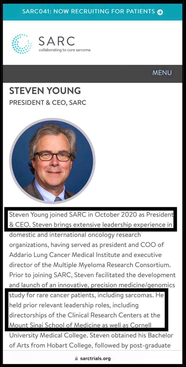 My buddy, STEVEN YOUNG, the PRESIDENT & CEO of SARC, and former DIRECTOR OF CLINICAL RESEARCH CENTERS at MOUNT SINAI SCHOOL OF MEDICINE and CORNELL UNIVERSITY MEDICAL COLLEGE, tells me you won’t. (For some reason, I tend to believe him.) But just to be safe, I may go ahead and ask… EUGENE & MAXINE ROSENFELD GLAXOSMITHKLINE (Wellcome Trust) MERCK (BlueVoyant, Duke Energy, Johns Hopkins) NIH DoD …and the fine MOSSAD/GCHQ folks over at DUKE UNIVERSITY their thoughts too.