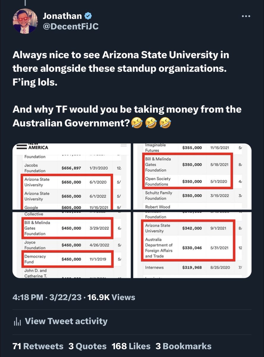 Hey, there’s already direct ties back to Michael Crow, IQT (CIA), DHS and ARIZONA. PS: I’m PRETTY SURE… THIS is exactly the shit that cost me my @DecentFiJC account way back in February of 2024, when it had ~65k followers and I was getting 15mm engagements/week.