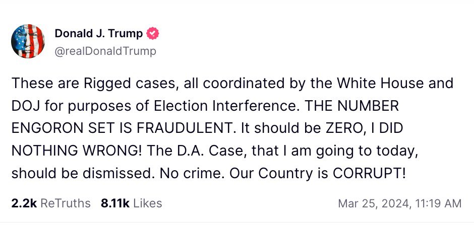 COMMS. Trump. Memo. Judge. Orders. Patriot intel: #REPORT Trump just released this memo hours ago. It's a comm. This will set the precedent on how this trial will go and his remaining 4 trials.