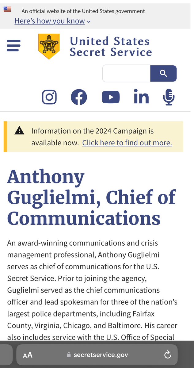💥💥💥💥💥💥 SECRET SERVICE 💥💥💥💥💥💥 ✅Anthony Guglielmi *The U.S. SS CHIEF OF COMMUNICATIONS Officer who put out this statement was previously the LEGISLATIVE COMMUNICATIONS ADVISOR for PFIZER. Interesting shit, folks. REEEAL interesting.