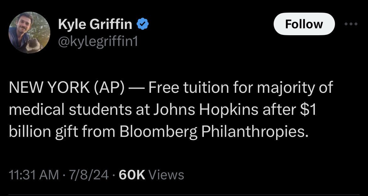 EXCELLENT call, @DakotaSidwell! Thanks for reminding me of the (illegal) JOHNS HOPKINS UNIVERSITY “STUDENT TUITION BRIBERY” move by BLOOMBERG PHILANTHROPIES just 6 DAYS AGO! I can’t wait for that dude’s sentencing to be carried out and for earth to finally be rid of that demon. https://t.co/vWw4ChvkMq