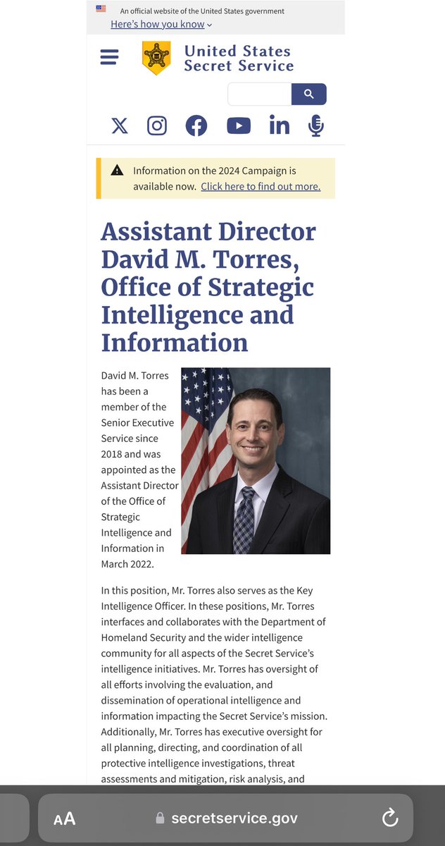 💥ANTHONY GUGLIELMI: https://www.secretservice.gov/about/leadership/doc 💥BRIAN S. LAMBERT: https://www.secretservice.gov/about/leadership/inv 💥DAVID M. TORRES: https://www.secretservice.gov/about/leadership/sii