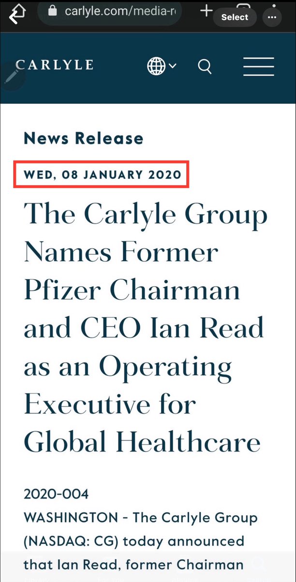CARLYLE GROUP and BALTIMORE, MD: Ian Read (Pfizer) and David Rubenstein (Orioles; Johns Hopkins University; CFR; Dominion Voting; etc.)