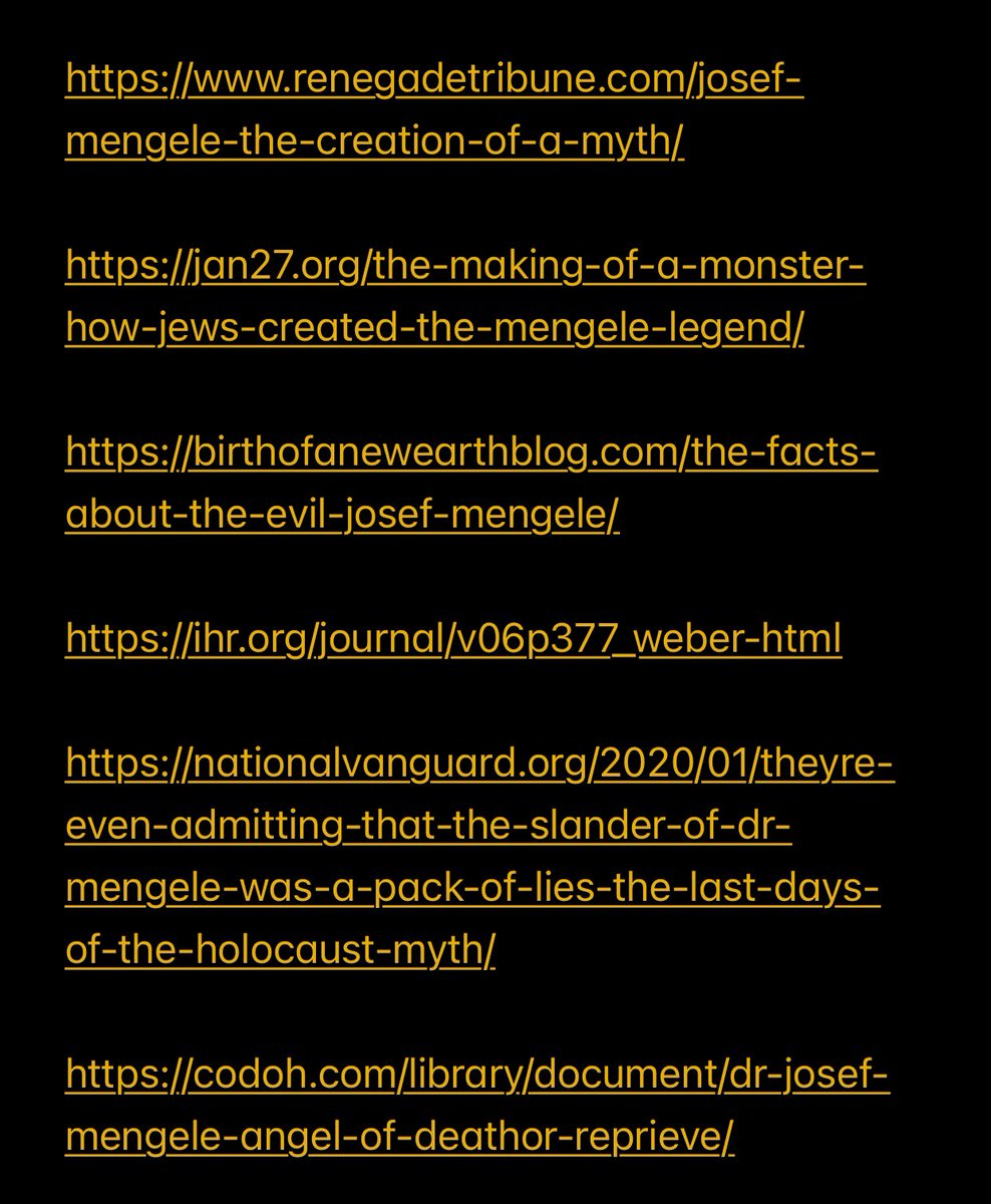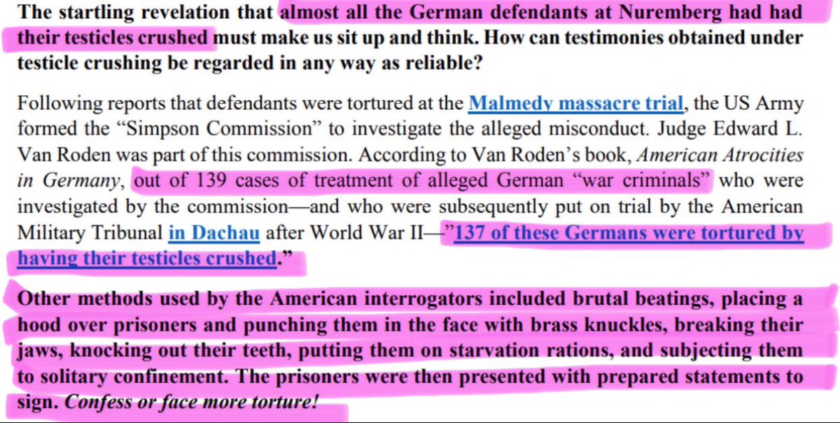 🧵6/12 ▪️”There is “eyewitness” testimony galore about utterly senseless, cruel experiments allegedly performed by Mengele, like changing eye colors by injecting dye into an eye, transplanting limbs and organs to random places in the body, and other nonsense.” ▪️”And it goes without saying that there is not the slightest proof for any of it: no documents, no autopsies, no medical examination on survivors proving it. Nothing. It’s all a pack of lies, sweet and simple.”