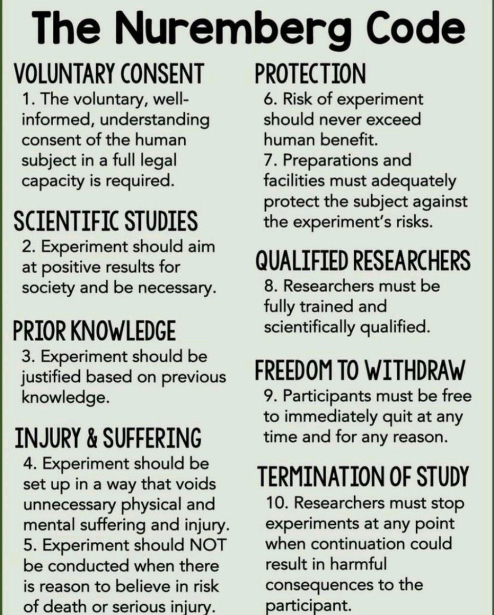 Violating the Nuremberg Code #Nuremberg2 was the point Coming from the same people pushing #MAID "Medical Assistance in Dying" Who also think there are too many people on the planet So YOU have to go