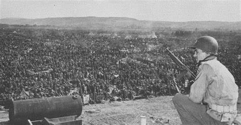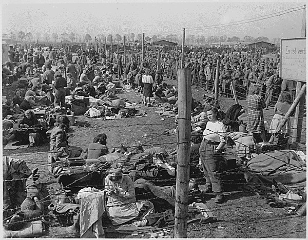 Eisenhower even started calling them "Disarmed Enemy Forces" to circumnavigate the Geneva Convention, which protected POWs from mistreatment. Below is Rheinwiesenlager, one of 19 open air American concentration camps erected in Allied occupied Germany.
