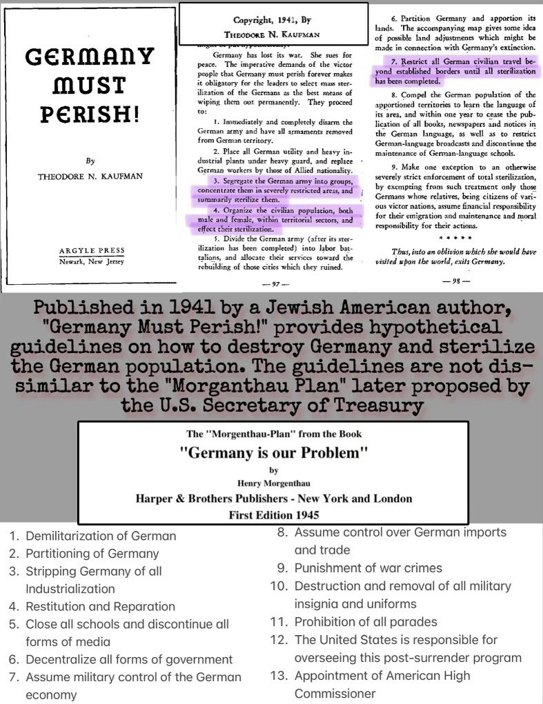 This complete pillaging and destruction of Germany post WW2 was intentional and laid out in "The Morganthau Plan," which oddly enough is almost a direct copy of jew Theodore Kaufman's 1941 "Germany Must Perish."