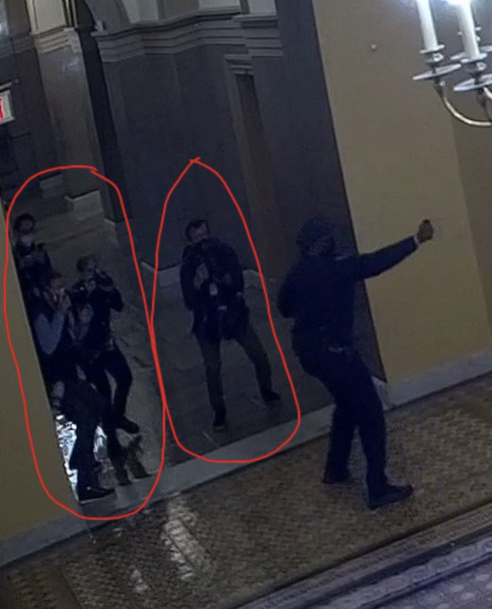 INSIDE JOB Giant magnetic doors can't be opened except from the inside. Plain clothes 'Trumper' (waived on by Cops without fight) signals to Capitol Police, who then opens giant doors! CP did everything under Pelosis orders.