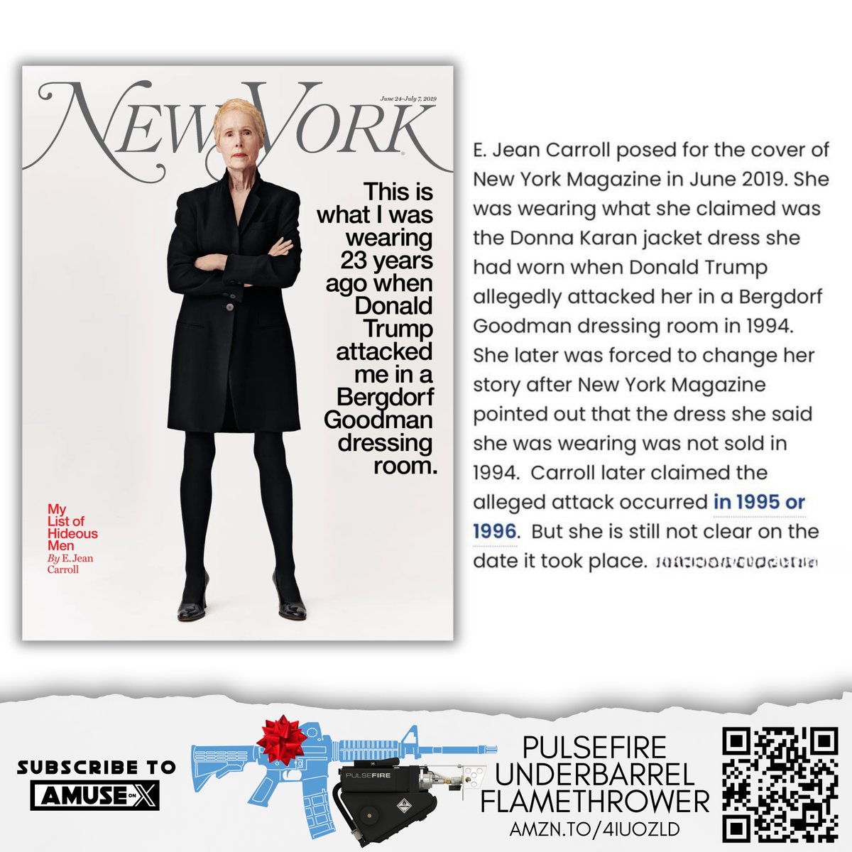 This isn’t some random woman. This is E. Jean Carroll, the woman who sued Trump for defamation and won over $83 million. https://t.co/i6mcA7c8zf