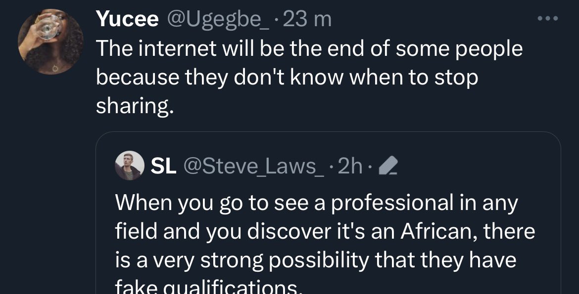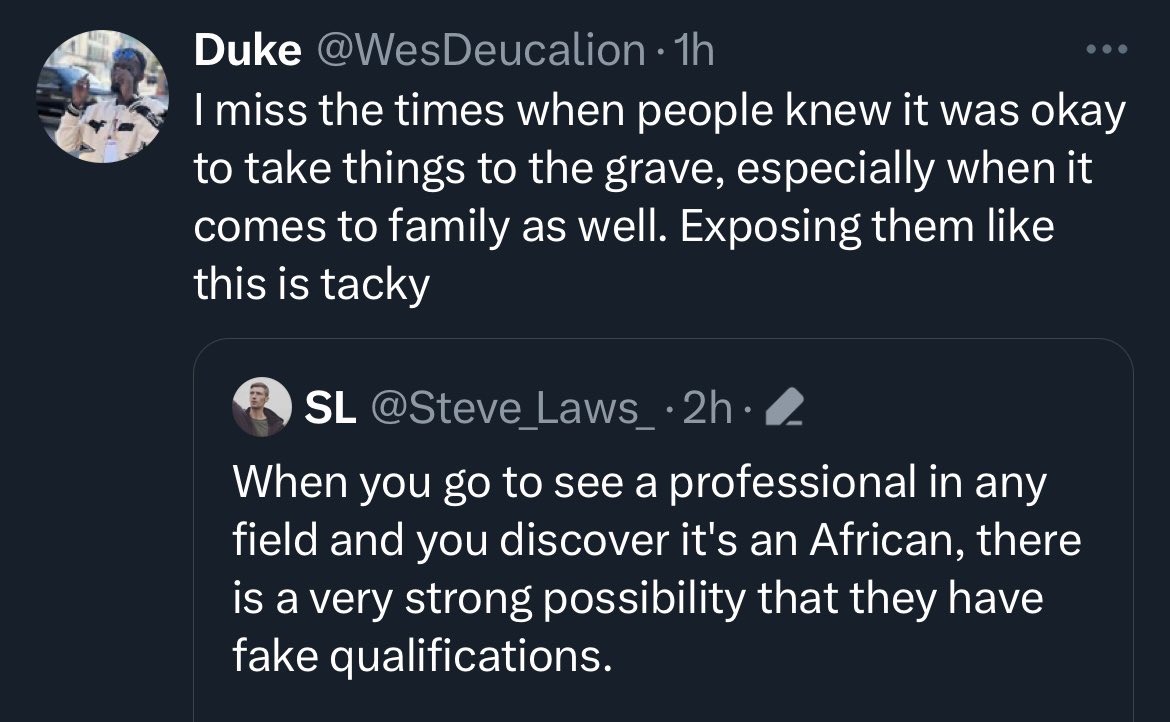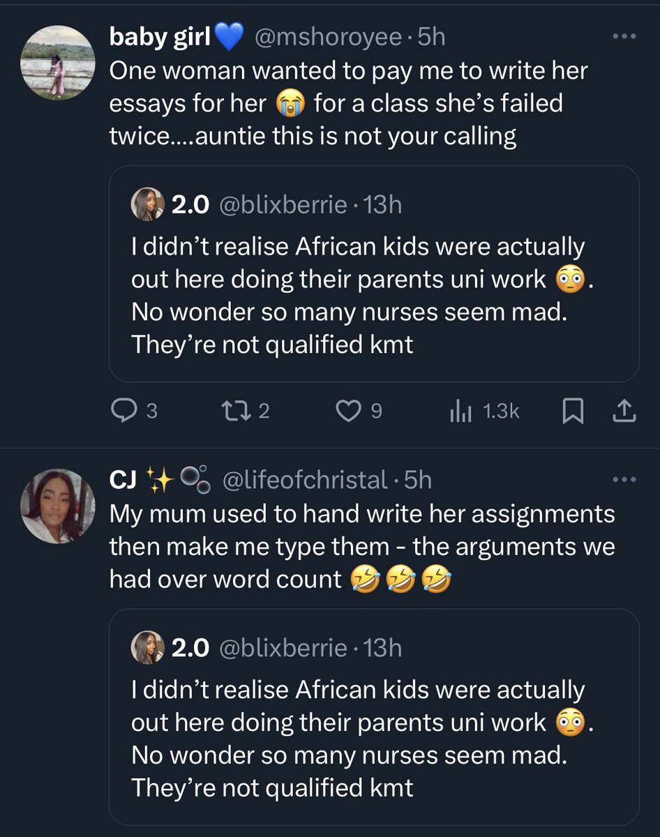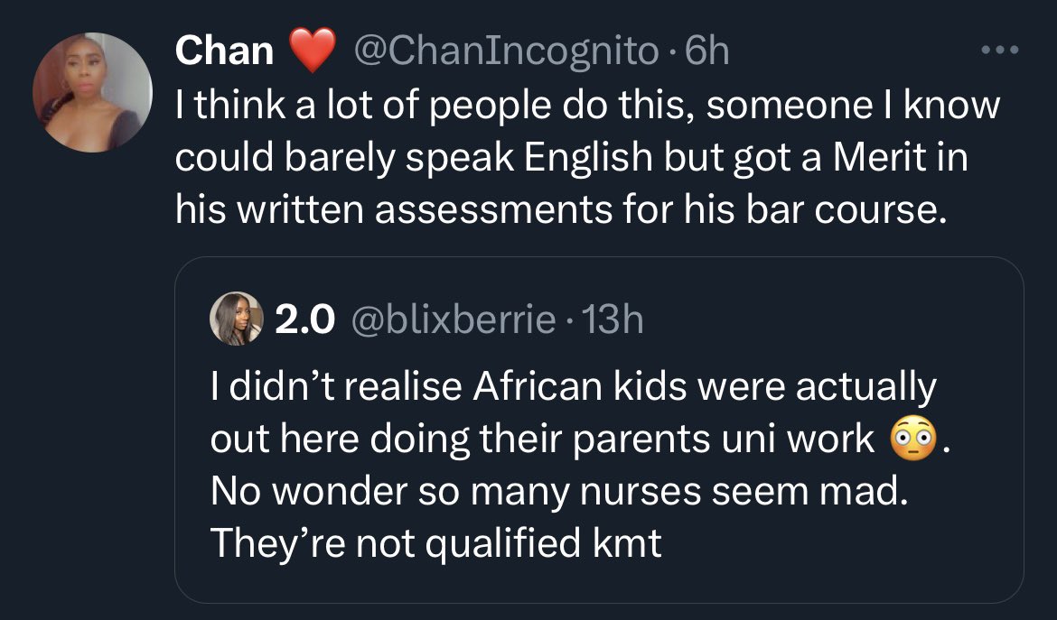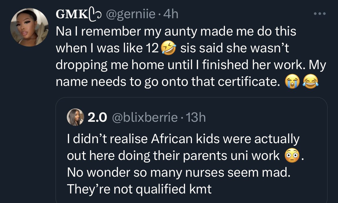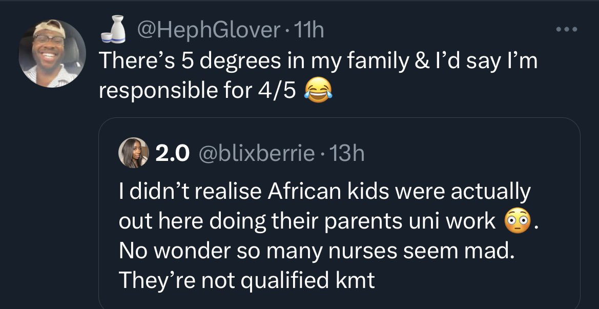 COMPILATION THREAD of Africans tweeting about fraudulently completing family members’ medical degrees After a now deleted tweet about Africans completing medical degrees for relatives went viral, some Africans began jokingly sharing their own experiences with degree fraud 🧵