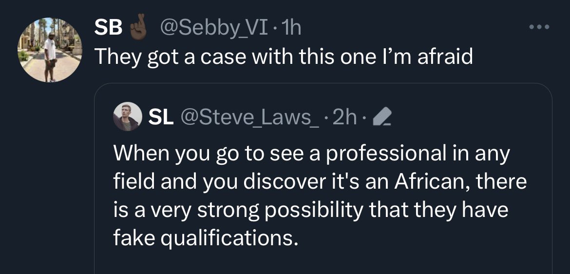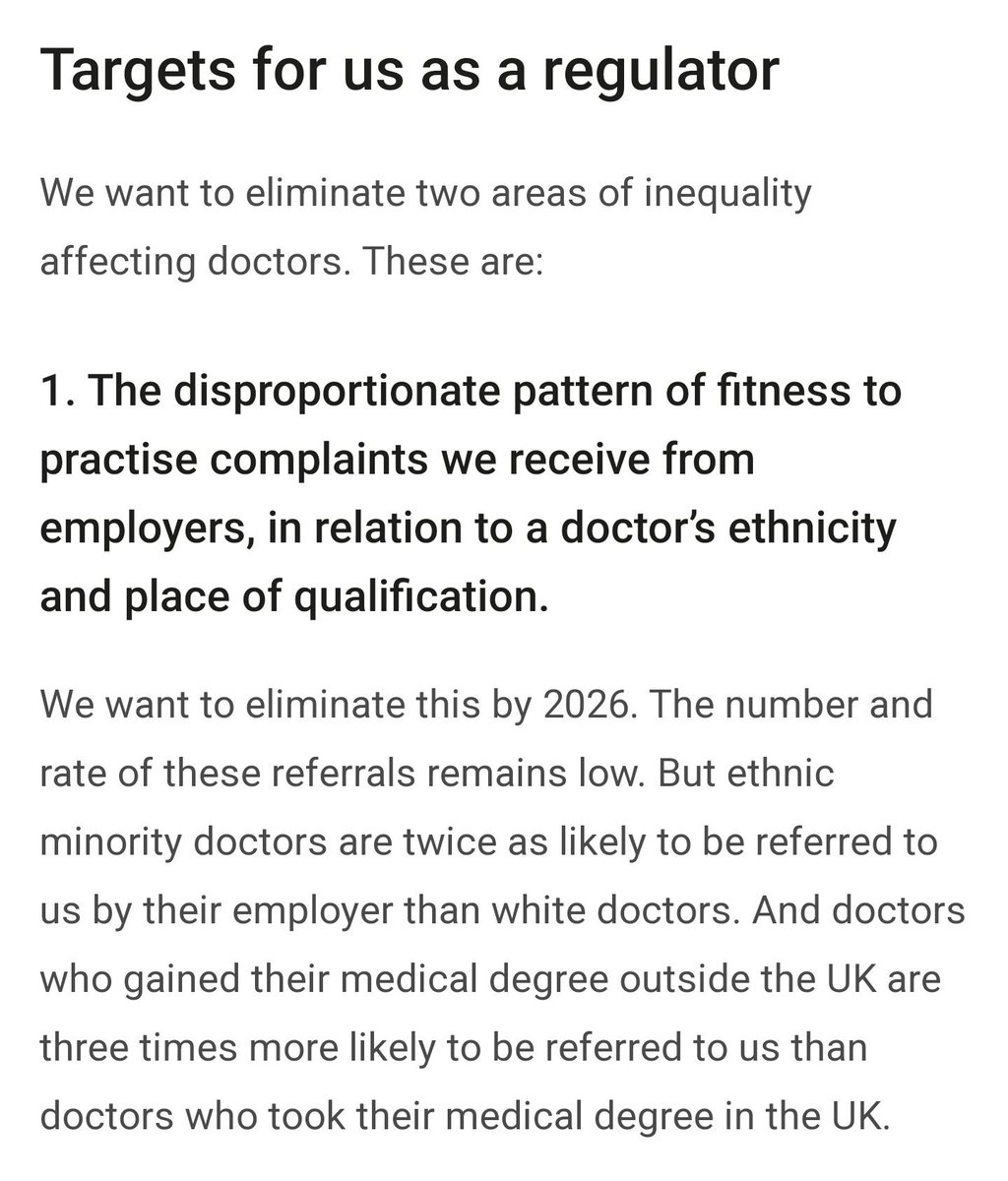 According to the British General Medical Council, doctors who qualify outside of the UK are 3x more likely to be referred to them for malpractice vs UK trained doctors: https://www.gmc-uk.org/about/how-we-work/our-equality-diversity-and-inclusion-programme/our-targets-to-address-areas-of-inequality They apparently regard it is a disparate outcome to be remedied by DEI policy