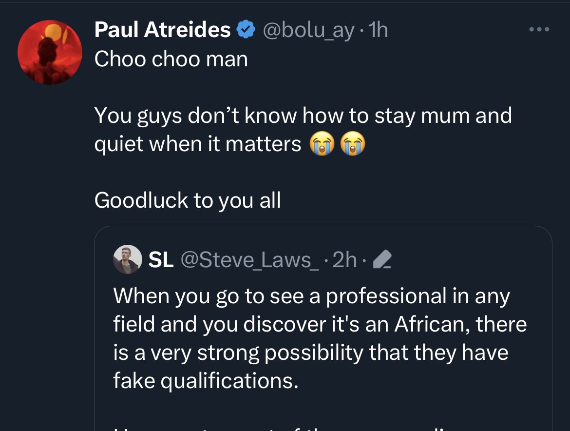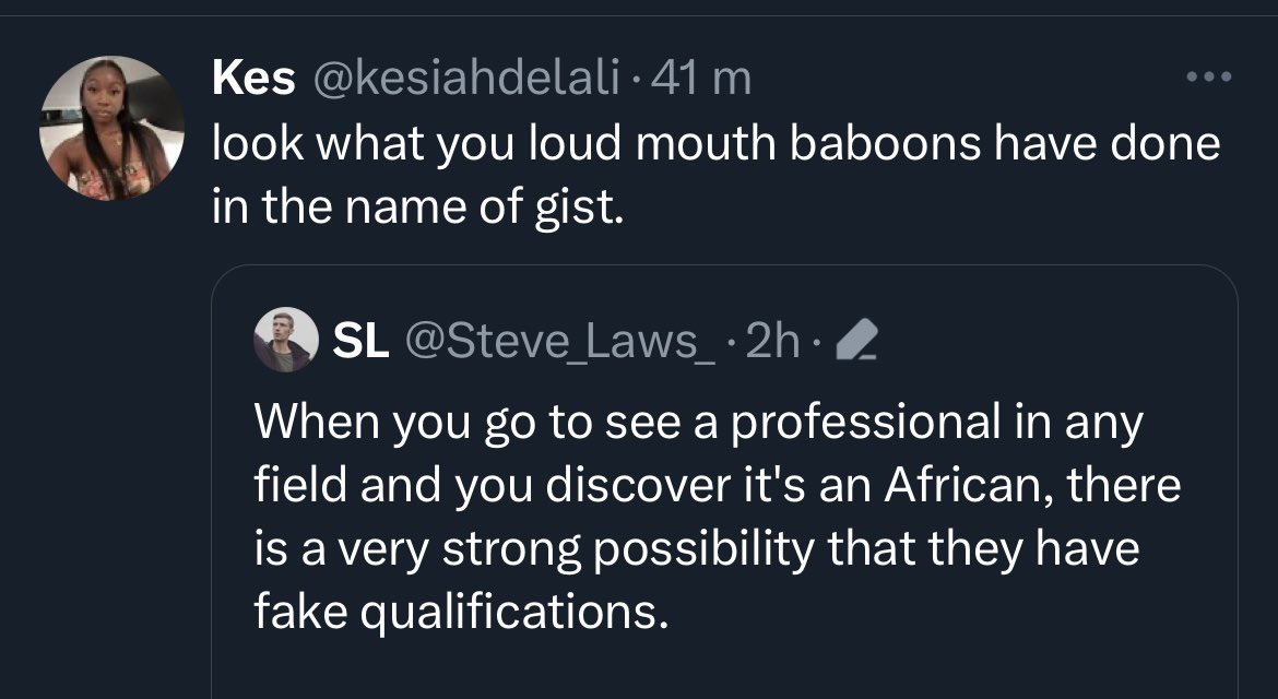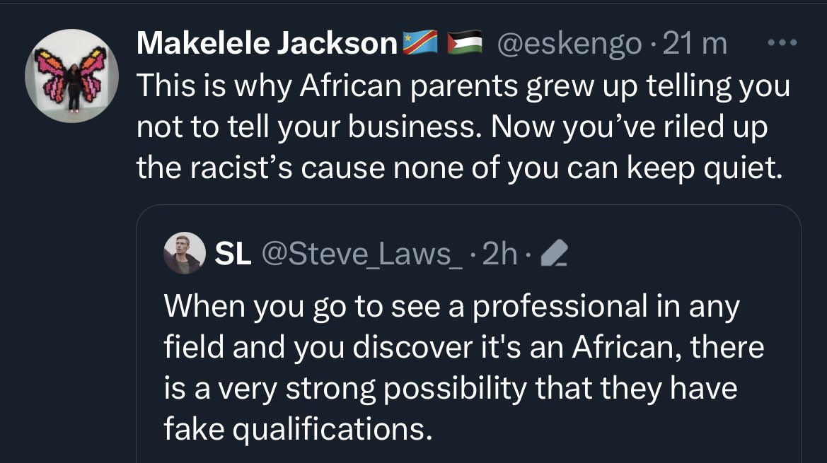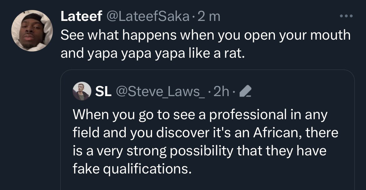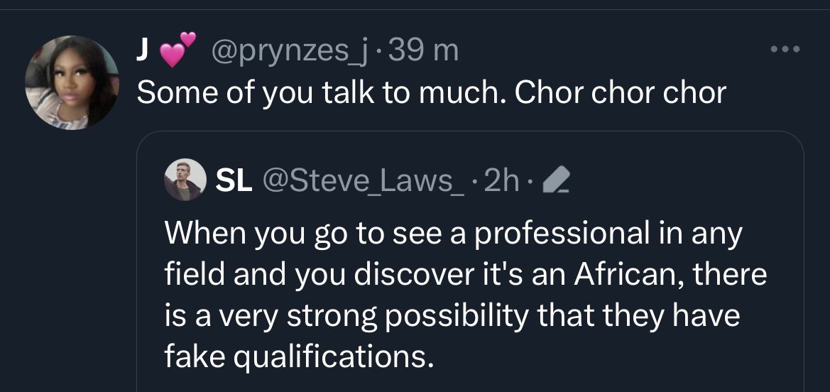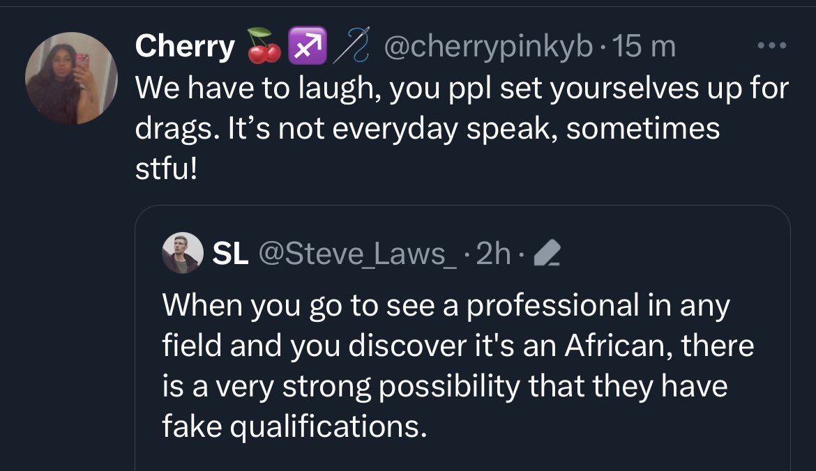 Influencer records video telling African Community off for tweets admitting to malpractice