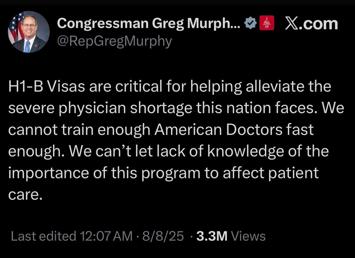 A friend of mine graduated medical school and didn’t match for his residency. I had no idea this happened. If they don’t match, they have to try again the next year. Sit in limbo. Rather than reform the residency system, we need more H-1B’s for private equity run hospitals? https://t.co/Cr7laHbsB5