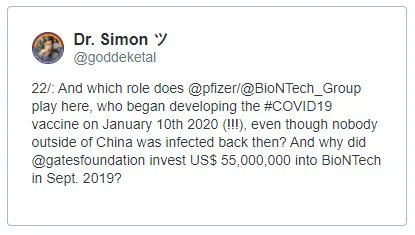 21/ 𝗘𝗫𝗔𝗠𝗣𝗟𝗘 𝗙𝗢𝗨𝗥: In June 2021, I was banned for asking questions. The @gatesfoundation really invested that much into BioNTech (https://endpts.com/biontech-partners-with-bill-and-melinda-gates-foundation-scoring-55m-equity-investment-novartis-sells-china-unit/). Why was it prohibited to ask questions?