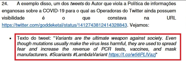 26/ The Brazilian armada of Twitter lawyers explained during the trial that I was not banned for "targeted harassment" but for spreading dangerous medical falsehoods (i.e. Twitter initially lied). Nevertheless, I was also presented with the tweet that led to my final suspension.