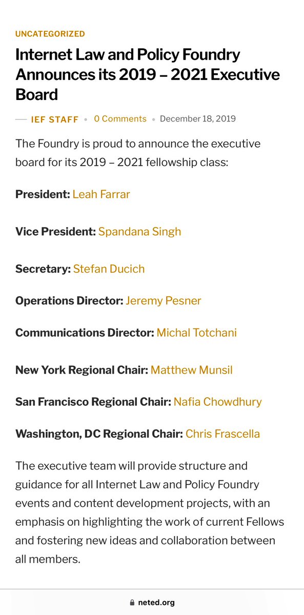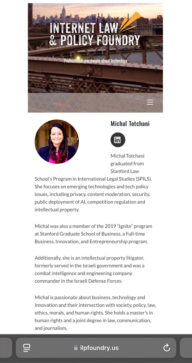 👺MICHAL TOTCHANI: She was also a “2019 FOUNDRY FELLOW” at the INTERNET LAW & POLICY FOUNDRY, serving as its COMMUNICATIONS DIRECTOR from 2019-2021. *TOTCHANI was in the same 2019 FOUNDRY FELLOW class with a buncha Jews/Mossad fa***ts from BOOZ ALLEN HAMILTON, NEW AMERICA, FACEBOOK, ORACLE and EQUAL JUSTICE WORKS (UJA/JDCA/Mossad), etc. *LEAH FARRAR was PRESIDENT of the 2019 FOUNDRY FELLOWS class. (Farrar, eh? Weird.) Imagine TF outta all THAT sports fans.😒