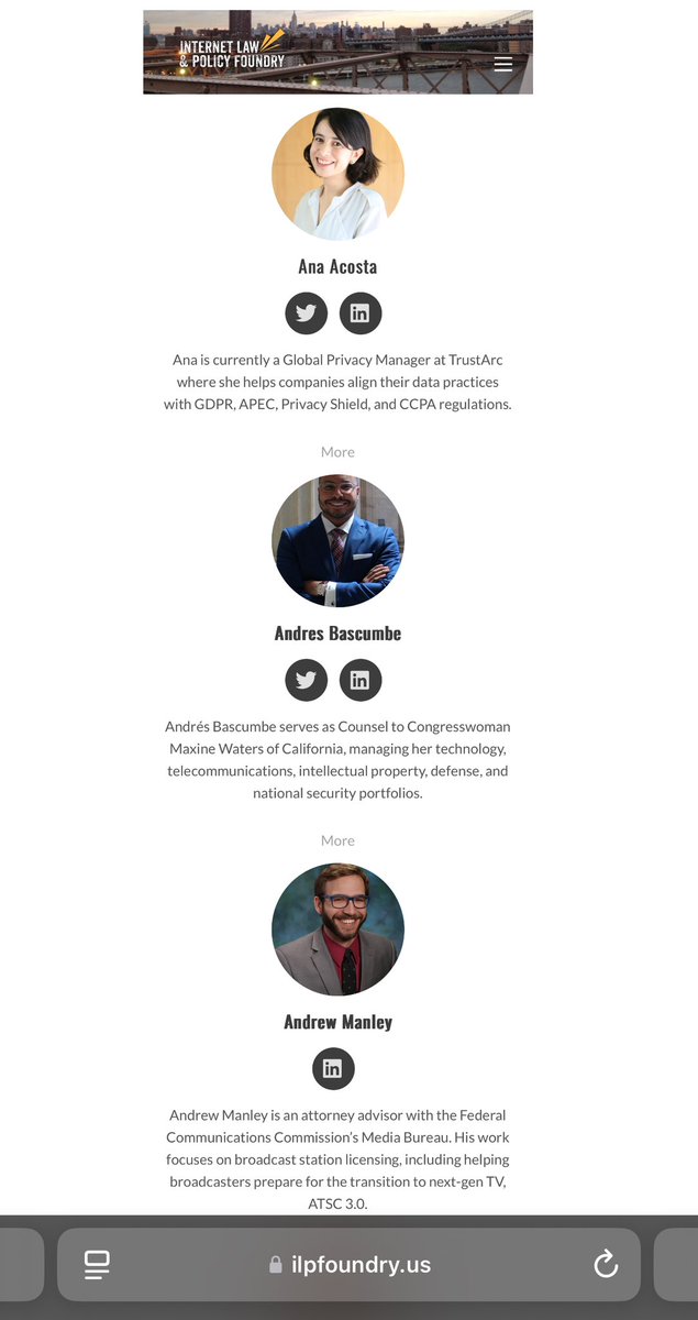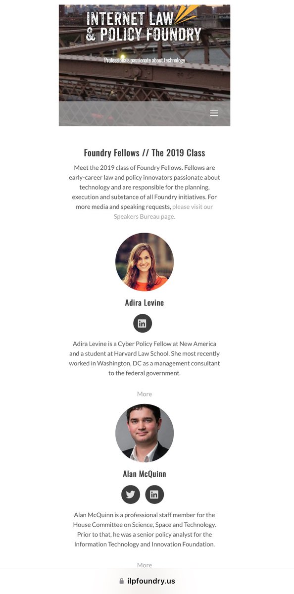 More 2019 FOUNDRY FELLOWS.🖕 *There’s President Leah Farrar and Lena Ghamrawi from Booz Allen Hamilton. *LENA GHAMRAWI is also a POLICY COUNSEL at THE FUTURE OF PRIVACY FORUM and works on PRIVACY PROGRAMS for lots of FEDERAL AGENCIES and COMMERCIAL CLIENTS. Neat stuff, sports fans. Real neat. *ANDRES BASCUMBE works for MAXINE WATERS (Humpty Dumpty Institute/Jeffrey & Mark Epstein) and ANDREW MANLEY is an ATTORNEY ADVISOR for the FCC “MEDIA BUREAU”. *BEN WINTERS of the EQUAL JUSTICE WORKS “EPIC” program and CHARLES CHENG of ORACLE too.