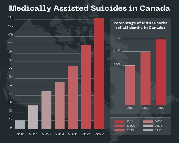 Just like every government program, once they got that first "win," they had to justify their existence. So the numbers exploded: From 1,000 deaths in the first year to 13,000+ in 2022. Now MAiD runs on two tracks: