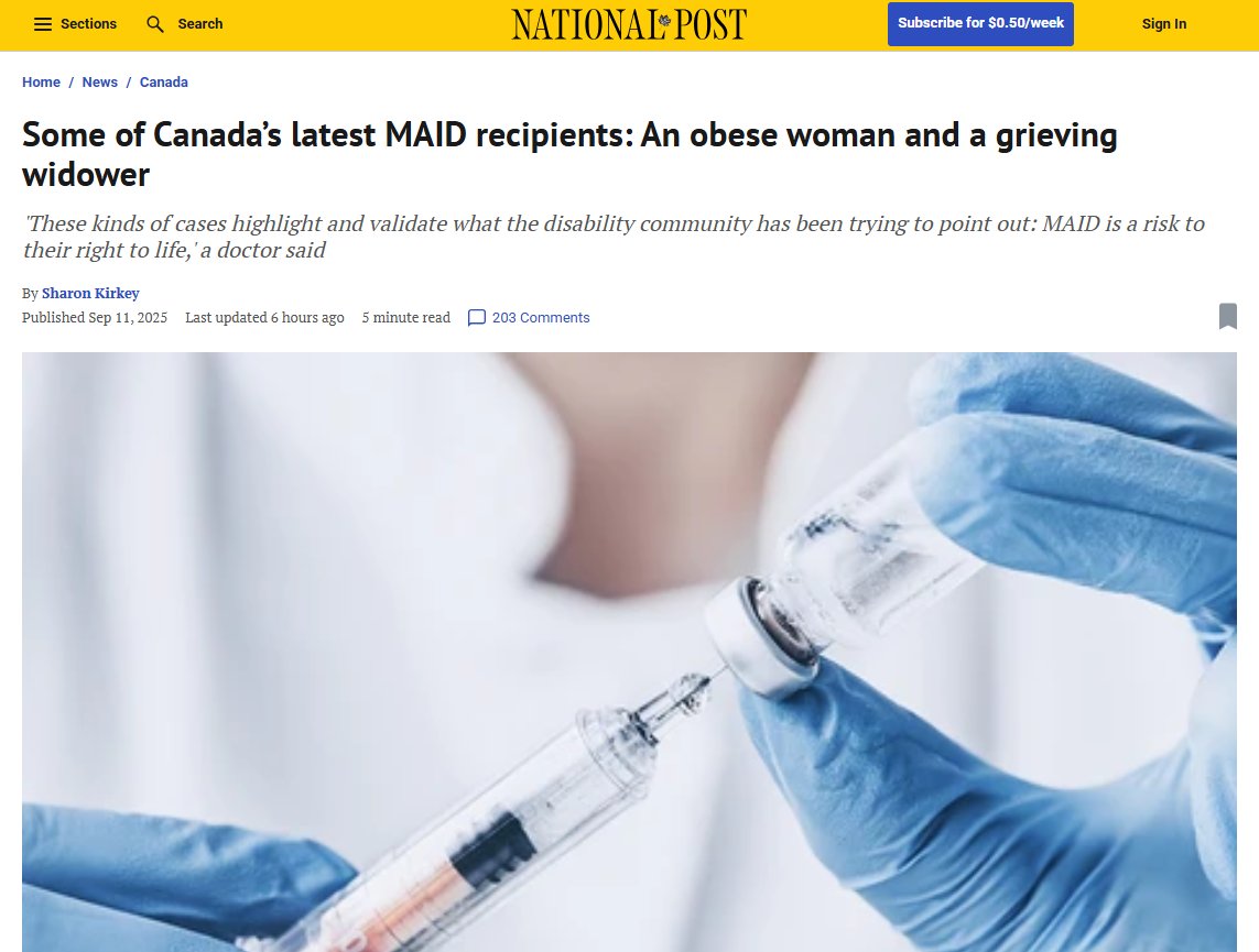Here's the truth: When your government starts offering to "end your suffering" instead of actually helping you live, that's not compassion. That's them looking at their budget and deciding you're too expensive to keep alive. And sadly...Canada's leading the charge.