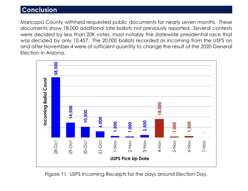Maricopa County’s OWN election records show they unlawfully counted over 20,000 mail-in ballots received on Nov. 4, 2020 and later. That’s more than twice the election “margin.” Arizona’s elections are rigged. They have to arrest you in order to keep their corrupt power. https://t.co/Z0ECvkcGlF