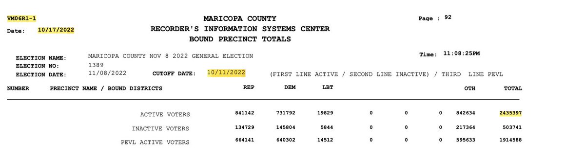 BREAKING: 45K EXTRA REGISTERED VOTERS ADDED OVERNIGHT IN MARICOPA COUNTY, ARIZONA 2022 GENERAL ELECTION then REMOVED THEM DURING AN ELECTION.👇 Cutoff 11th October 2,435,397 L&A Testing 12th October 2,480,880 Election Certification 2,435,397 According to their Maricopa County's own official records. Slide 1: Registered Voters as at the Cutoff 2,435,397 Slide 2: Pre L&A - 2,480,880 (extra 45K) Slide 3: Post L&A - 2,435,397 Slide 4: Chart for visual understanding Any registrations after the cutoff are excluded from the 2022 election. Please retweet and share so that the good people of Maricopa can ask and get the answers they deserve. #Trump @AZGOP #Arizona #Trump2024 #Elections2024 @KariLake @KariLakeWarRoom @BlehmLawAZ @LeadingReport @FSociety_1942 @Rach_IC @Ryan_L_Heath @WendyRogersAZ @Peoples_Pundit @RealAmVoice @realLizUSA @AbrahamHamadeh @TalkMullins @ShawnSmith1776 @pjcolbeck @PatrickByrne @TPPatriots @realAlexKolodin @RealAlexJones #MerryChristmas @ElectionWiz @ArizonaSunTimes @elonmusk @KristenNHammond @JenWEsq @j3669 @RealSKeshel @RealMarkFinchem