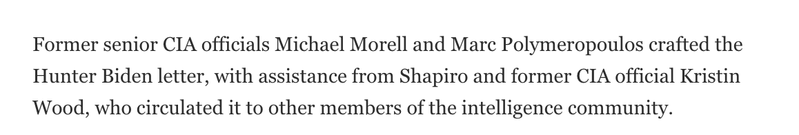 @listen_2learn @ItsYourGov @JeffClarkUS Now the members of The Steady State. Marc Polymeropoulos CO-AUTHORED the Hunter Biden laptop letter that 51 intel officials signed before the 2020 election. Douglas Wise signed it, then ADMITTED he knew the laptop was real https://t.co/yDxHtK2VLr
