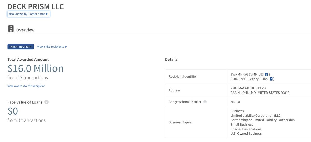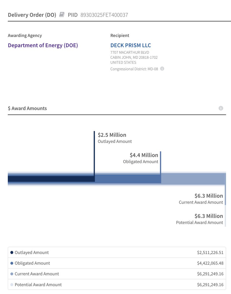 @listen_2learn @ItsYourGov @JeffClarkUS The International Spy Museum advisory board lists Cash as "owner and founder of Deck Prism, LLC," registered 2008, Cabin John, Maryland. That company has $15+M in DOE contracts. The address on USA Spending matches a residence owned by Cash himself. Let's look. https://t.co/1KSte4FF8K