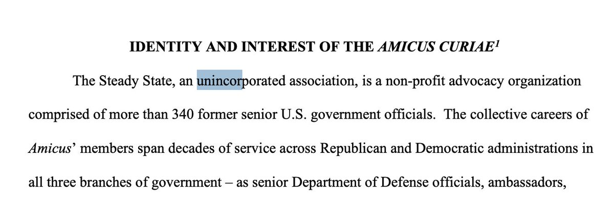 @listen_2learn @ItsYourGov @JeffClarkUS The Steady State claims "501(c)(4)" status on their Substack. But I couldn't find that. But in a SCOTUS brief (Newsom v. Trump, Oct 2025) they called themselves an "unincorporated association." And used the same address as in the DOE contracts. Which is it? https://t.co/XrIqxKQCiy