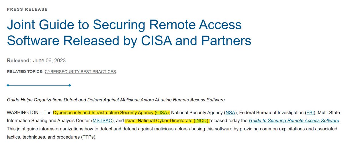 @GreenEyesinTN @DecentTruth @KimWexlerMAJD @dsauce @TrueNorth444 @getdownmidtown @Theonlyme333 @Vltra_MK @CanariesBlue I believe so. Tom Alexandrovich worked for the Israel national Cyber Directorate, which worked with CISA: https://en.wikipedia.org/wiki/Tom_Alexandrovich#cite_ref-5 https://www.cisa.gov/news-events/news/joint-guide-securing-remote-access-software-released-cisa-and-partners Do you think elections might be concerned with "securing remote access software?" The answer is yes. https://t.co/la9KxaVGeQ
