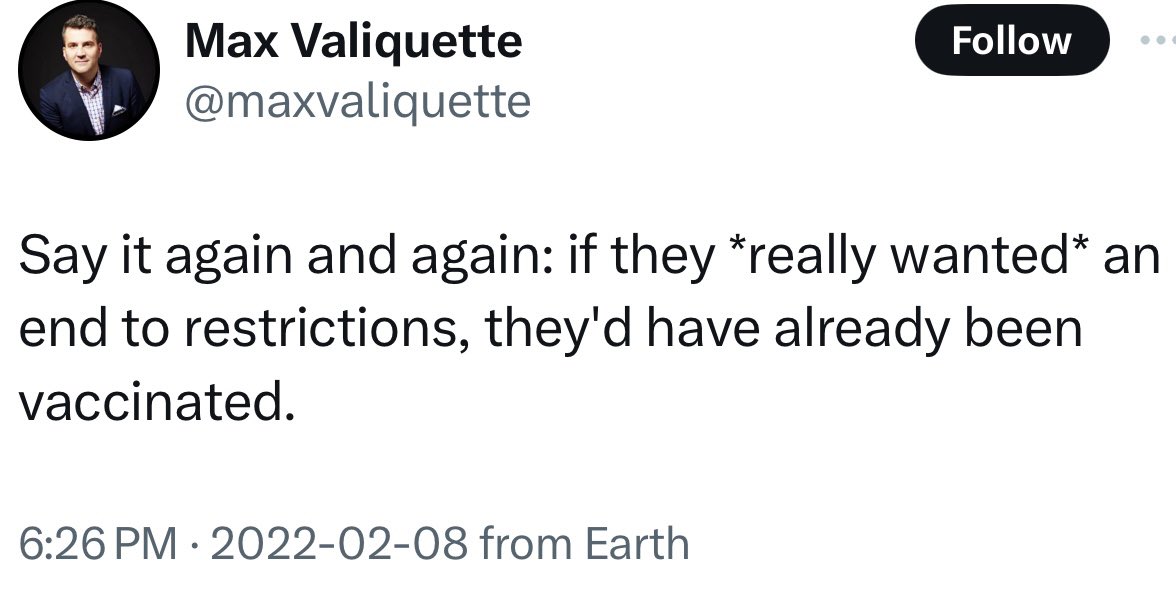 2. The other comms superstar had to lock down his Twitter account after it was revealed that he was a pro-lockdown zealot who supported school closures, and who also joked about insisting on vaccine passports for promiscuous events https://tnc.news/2023/11/27/trudeaus-new-comms-expert-was-pro-vaccine-mandate/