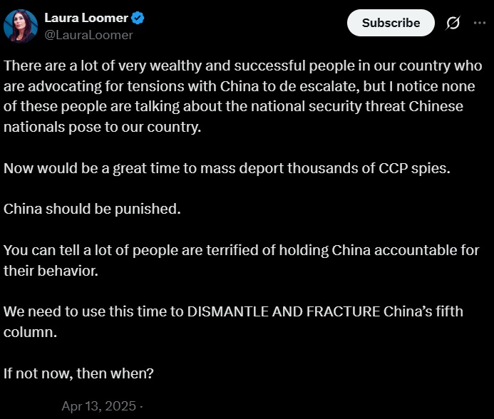 Laura Loomer is right. The Chinese Fifth Column is already conducting subversive activities throughout the U.S. and could carry out acts of widespread sabotage in case of conflict with China. Her investigative skills would invaluable in the fight against the Chinese Fifth Column. https://t.co/rhSjkGFTY3