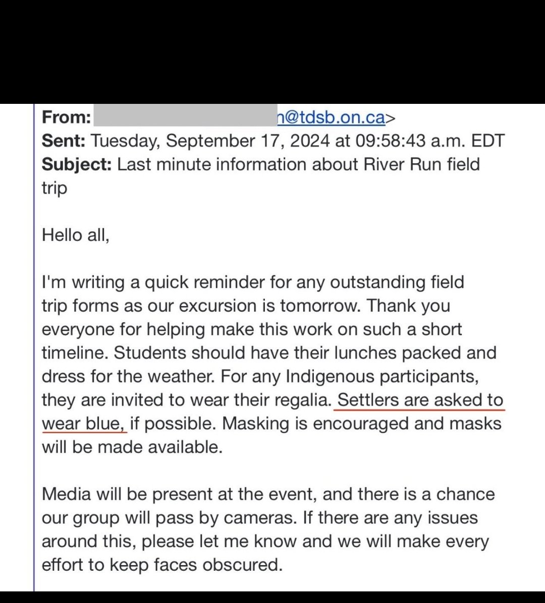 Toronto school board telling white kids to wear blue ...to indientify them as settler- colonizers. Totally normally. https://t.co/f6ZKVE8W70