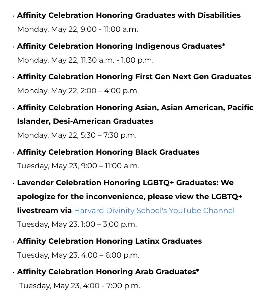 EXCLUSIVE: Harvard provided racially segregated "affinity group" celebrations at its commencement event earlier this year. Whites and Jews were the only groups not provided with celebrations. The university has now deleted this page from its website. https://t.co/ZFLF2exvhL