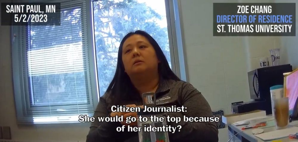 “The O’Keefe Media Group (OMG) has released footage from a citizen journalist showing the Housing Director at the University of St. Thomas in Minnesota promising ‘top of the list treatment’ for trans students.” https://thenationalpulse.com/2023/05/10/omg-hidden-camera-catches-catholic-college-prioritizing-transgender-student-promising-shared-accommodation-with-biological-girls/