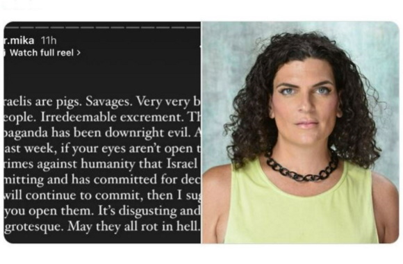 Transgender art school professor calls Israelis ‘pigs’ and ‘savages’ in social media post https://www.thecollegefix.com/transgender-art-school-professor-calls-israelis-pigs-and-savages-in-social-media-post/