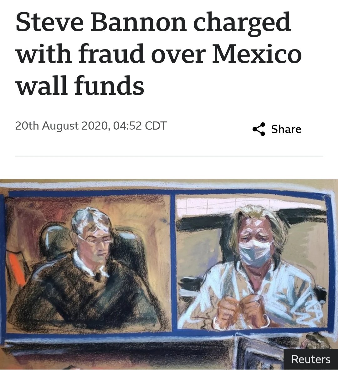 How did we forget about this story? Former Trump adviser Steve Bannon has been arrested and charged with fraud over a fundraising campaign to build a wall on the US-Mexico border. Mr Bannon and three others defrauded hundreds of thousands of donors in connection with the "We Build the Wall" campaign, which raised $25m (£19m), the US Department of Justice (DoJ) said. Mr Bannon received more than $1m, at least some of which he used to cover personal expenses, it alleged. In court, he entered a not guilty plea. Mr Bannon, who has been released on bail, was a key architect of Donald Trump's 2016 presidential election victory. His right-wing anti-immigration ideology fuelled Mr Trump's "America First" campaign.https://www.bbc.com/news/world-us-canada-53853297 Do you all remember when @Realdefender45 was invited to be on this program? Do you all remember how excited she was? Do you now see she could care less about who she socializes with? How are all these "Plastic Pay-triots" communing with the enemies of Donald Trump and say they are fighting for the freedom of this country? Do you now see how many enemies were/are surrounding D. Trump? Now do you see why I uploaded that information about Andrew Breibart & Steve Bannon who started their news business in Israel with the same Zionist Benjamin Netanyahu who was behind 9/11? Ask yourself why are you not getting this info from these Plastic Pay-triots? Why do some want to be famous so bad where they are willing to risk their reputation just to say hey' I was on the WR with S. Bannon. People you have to understand why Donald Trump is no longer associating with people from his past administration. They are Deep State. But they want to convince you they are not in this for money, fame, and ego. The linktrees on their profile should tell you everything. I would have never thought someone would stoop that low who call themselves Realdefender45. How when you do not care if someone is working against your freedom that has ties to the very man who tried to take them? People, no one has any real info on me. This is why they avoid attacking the info but instead want to come after me personally. Now you see through the facade. Now you see through the smile. Now you see through the fake patriotism.