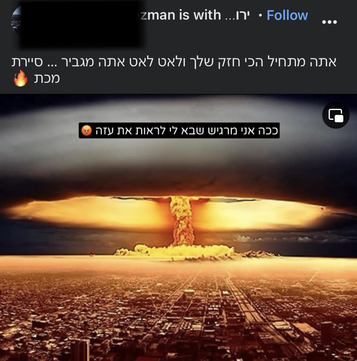 12. Tank commander Baoz Maman in the Kiryati Brigade, 4th brigade on Jan 11: “Let the Gaza Strip be erased, let all the houses there be destroyed, and let the entire population there live in tents.” Full post: I have a Palestinian friend. She is Israeli, young, beautiful, opinionated. She annoys me many times and I annoy her, and I really love arguing with her and especially finding the places where we see eye to eye. First of all, I highly recommend following her; she is very witty and smart, writes wonderfully, and accurately reflects how the young generation of what we call "Israeli Arabs" thinks, and they courageously call themselves "Palestinian citizens of the state." Today, Hanin wrote an article with many things I (again) disagree with. My response is in the comments on the original post, but also here. You are welcome to respond, argue, share identical or different opinions. I do not allow insults or disrespect, consider this a warning!!! Have a good weekend, everyone. Sorry, I don't feel shame. There are many other things. I feel deep sorrow for the victims and the destruction. I feel immense frustration that we have reached this point. I feel paralyzing fear that I am the only one in this crazy place talking about tomorrow from a place that no one else understands; that to have a different tomorrow, we can no longer speak in hollow slogans. But shame, I do not feel. I do not feel shame because the language that started (and yes, I know this is not really the beginning and that there is a background, etc.) on October 7 erased the concept of shame. On October 7, the Palestinians clearly said: We are here to... On October 7, the Palestinians clearly said: We are here to kill you. No matter what you do, our supreme mission is to eliminate you. Us and our partners from Iran and Hezbollah. So when they come to kill me, I kill. And I try to do it with more force because I have no option but to win. And kill them! So no, I do not feel shame. This does not mean I cannot be a partner for a better future. To continue to strive, to write, to contribute, and to believe that it is possible. Because it is worthwhile. Because we must!!! But since October 7, I also say not at any cost! Want to talk about an arrangement? Want an end to the occupation? Want the removal of checkpoints and the opening of borders? It will start to happen when there is not one person in Gaza who calls for the destruction of Israel without going to prison! Not one imam will sing on his loudspeaker on Friday to kill Israelis without being immediately deported from here. When this starts to happen, I will return to support real steps. Until then? As far as I'm concerned, anyone who continues to call for killing me, I'm done with accepting spit in the face and convincing everyone it's rain!!! Let the Gaza Strip be erased, let all the houses there be destroyed, and let the entire population there live in tents. Because between you and me, Hanin, my true friend, if I have to choose (and they are forcing me to choose!) between it happening to them or happening to my children - the choice since October 7 has never been easier!!!