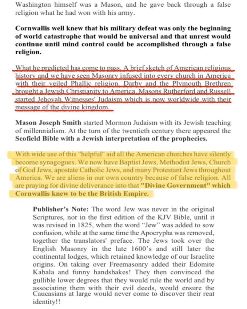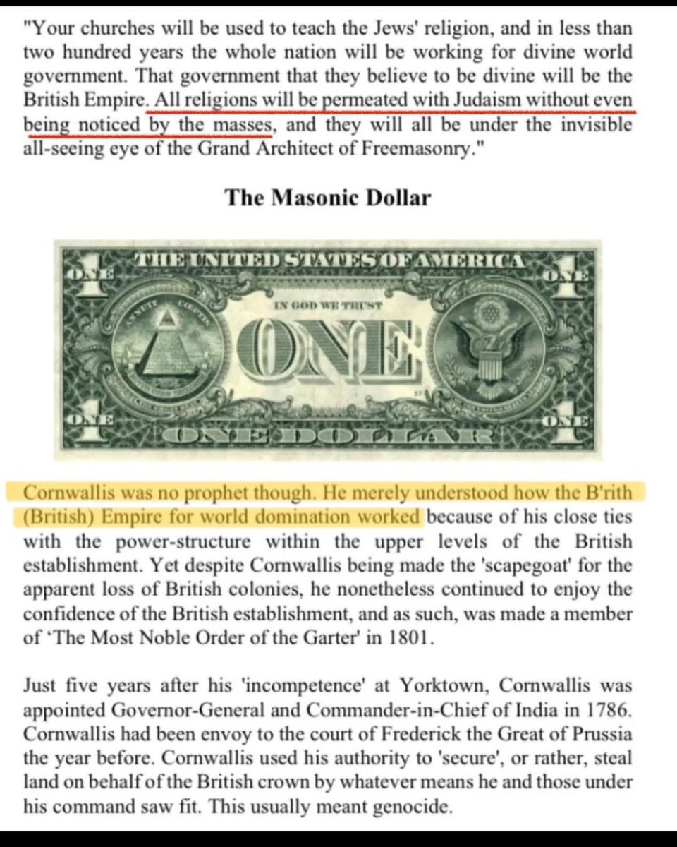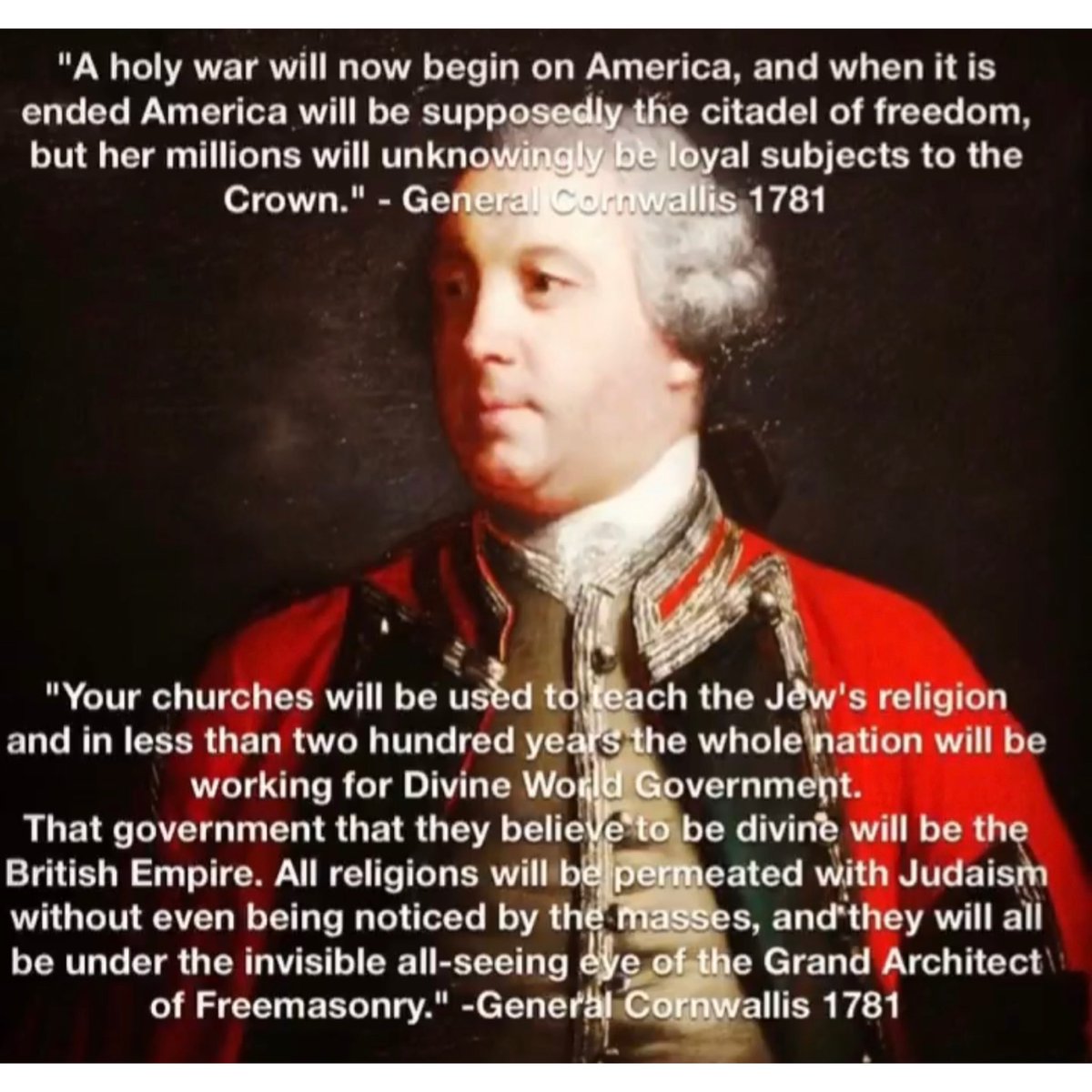 @kyleisbased (3/8) General Cornwallis, 1781, in his booklet “Legion of Satan” on the 🕎Freemason✡️ subversion of every aspect of America including his prediction that every religion would be unknowingly kosher within 200 years.