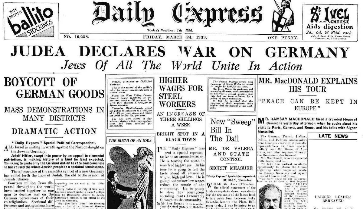 Upon Hitler becoming chancellor in 1933, world Jewry immediately made him public enemy number 1. As expressed by the below headline “Judea Declares War on Germany.” From there on, the Jewish hands to orchestrate World war 2 went to work. 🧵 10/19