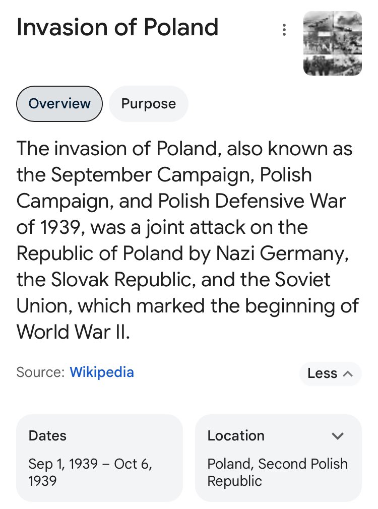 But didn’t world war 2 start from the German invasion of Poland? Kinda. Obviously Germany did invade Poland in 1939, but did you know the Soviet Union invaded Poland 16 days after? Why did Britain side with the anti Marxist Germans over the Marxist Russians? 🤔 Why did Germany invade in the first place? The main reason Germany invaded was because it was a territorial dispute in the first place. Look at any European map pre world war 1, and you will see the German Empire contained large swaths of Poland. Further, the specific region in question (Danzig) still had a large German population. Hitler was getting reports of German massacres by the Poles in that region, and decided to invade. If the allies main reason for world war 2 was to protect Poland, they did a terrible job. In the end, they gave it to Stalin. If international Jews wanted to start a world war to end Hitlers regime and kill millions of Gentiles, and expand Jewish power worldwide, then everything went according to plan. 🧵 11/19