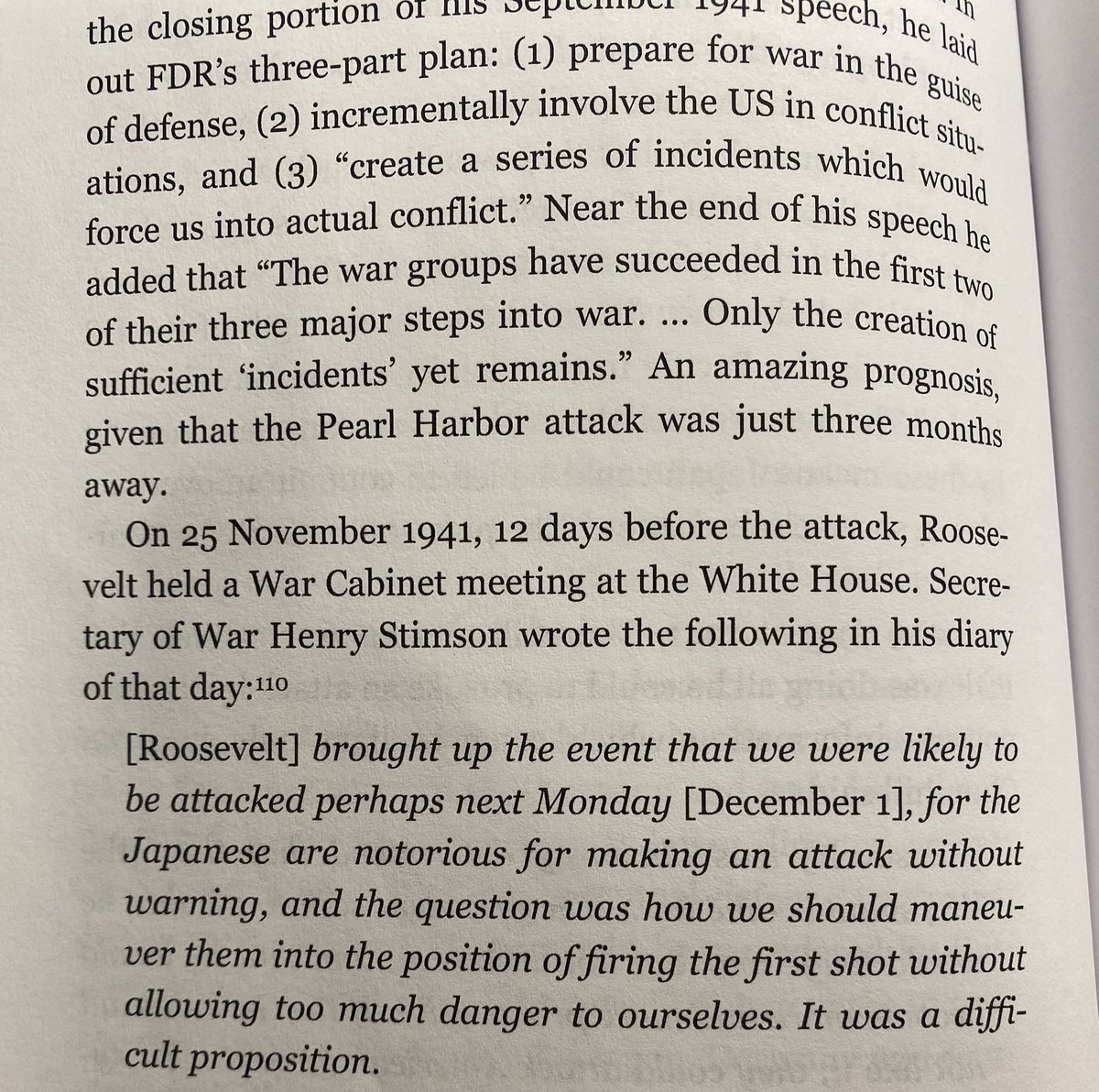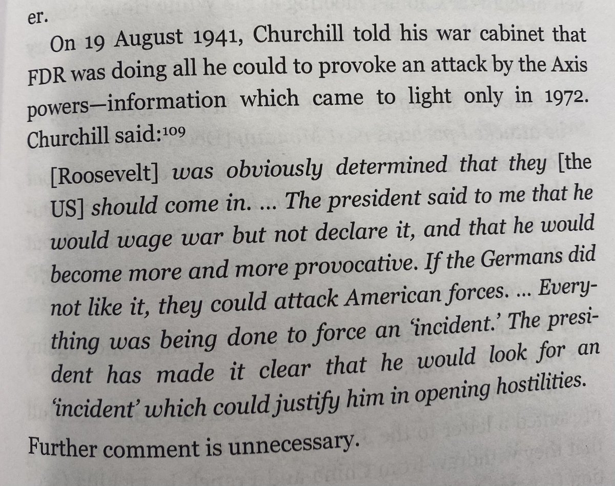 Finally we have Pearl Harbor. Not only is there ample indications that the US knew about the attack ahead of time, they helped force it with US oil sanctions. We can look at some of the memos from FDR’s war cabinet meetings to see these discussions about allowing Japan to attack first.. -FDR imposed an oil embargo on Japan. -FDR froze all Japanese assets in the US Japan needed the Oil from the US. The US knew this, and backed Japan into a corner. Faced with the option of backing down to China, or attacking the US, they attacked the US. Then Roosevelt got the war that he wanted, and now he had the political capital to wage it. If the US was truly isolationist, why would they put an Oil embargo on a trading partner? Because they weren’t isolationist, the same Jewish bankers that got England into a war over a conflict between Germany and Poland, got the US into the war also. And the west has been ran by these Jewish bankers ever since. 🧵 17/19