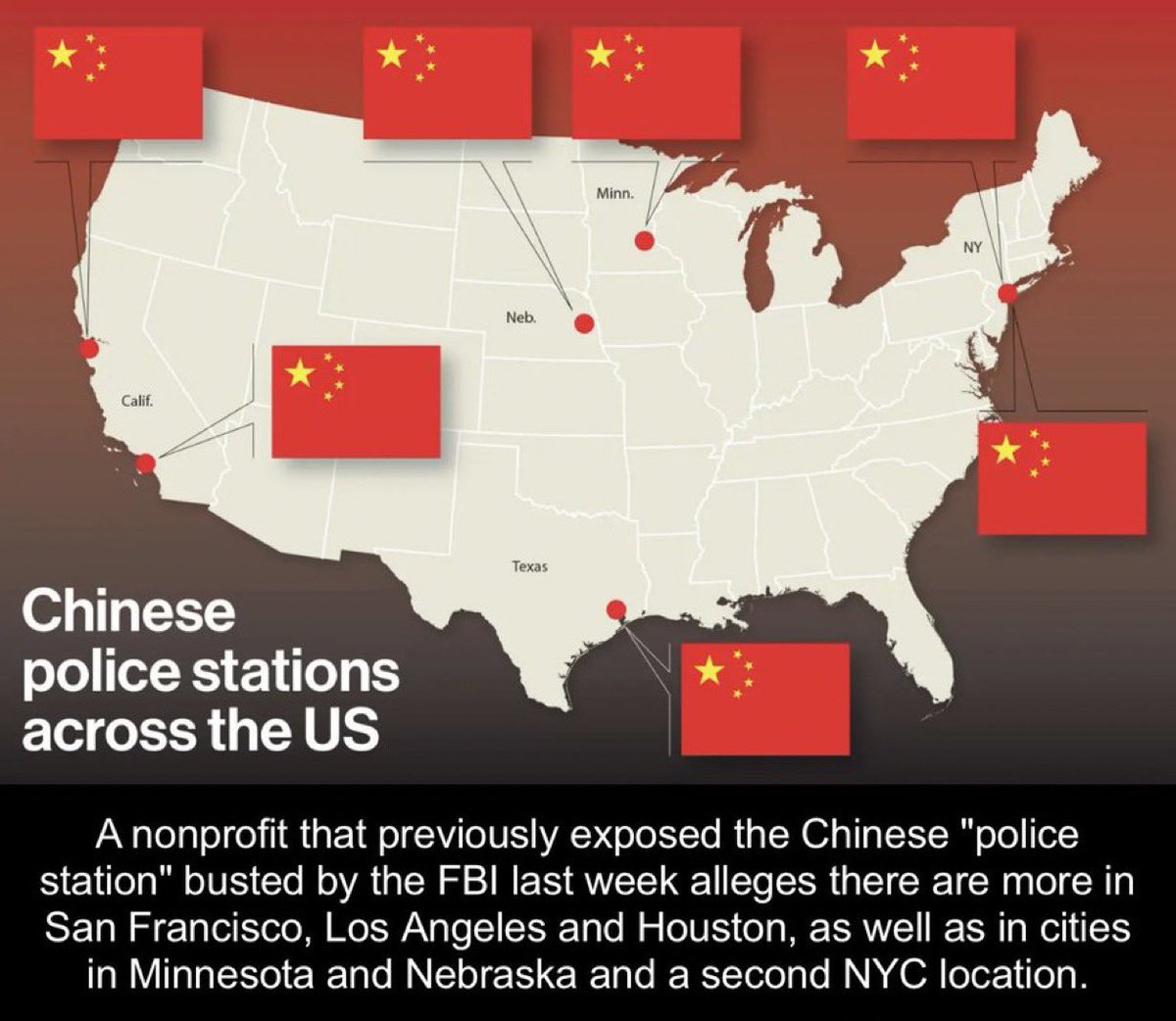 Just last year there were seven illegal Chinese police stations uncovered in the U.S. Minnesota, California, and Nebraska accounted for four of these police stations. The home states of Kamala Harris & Tim Walz. 🧵13/15