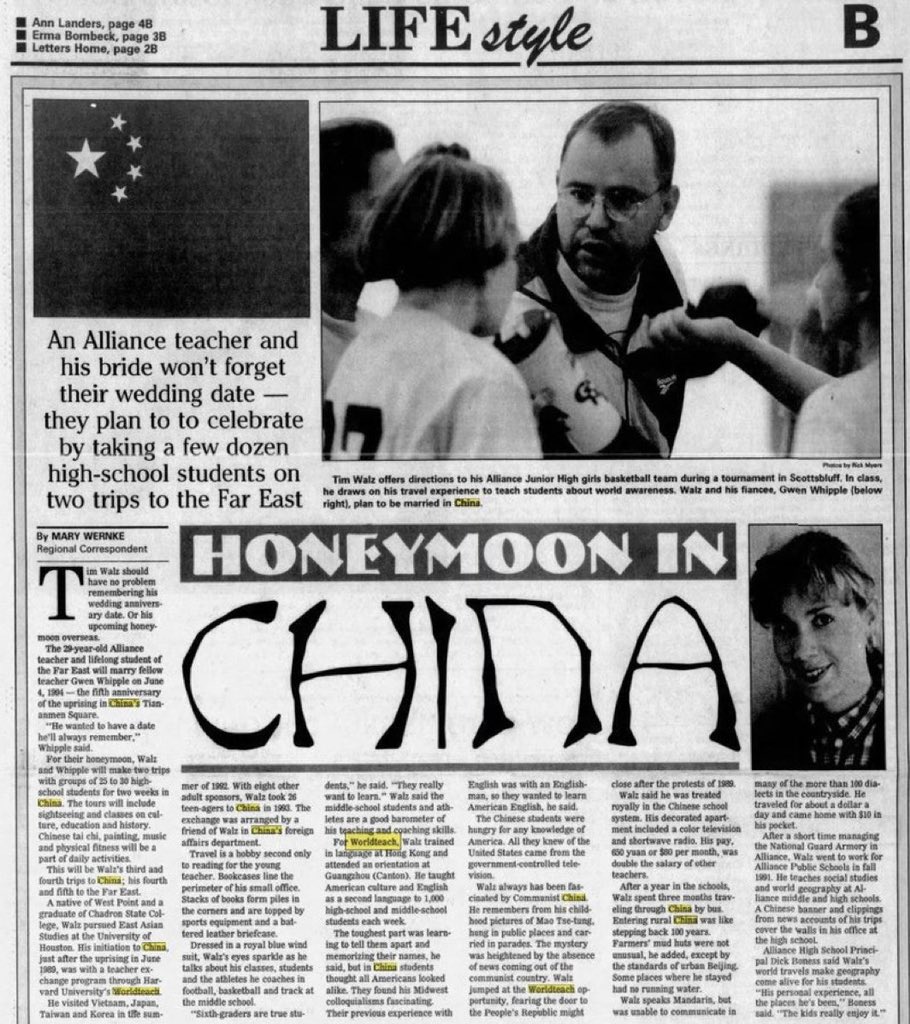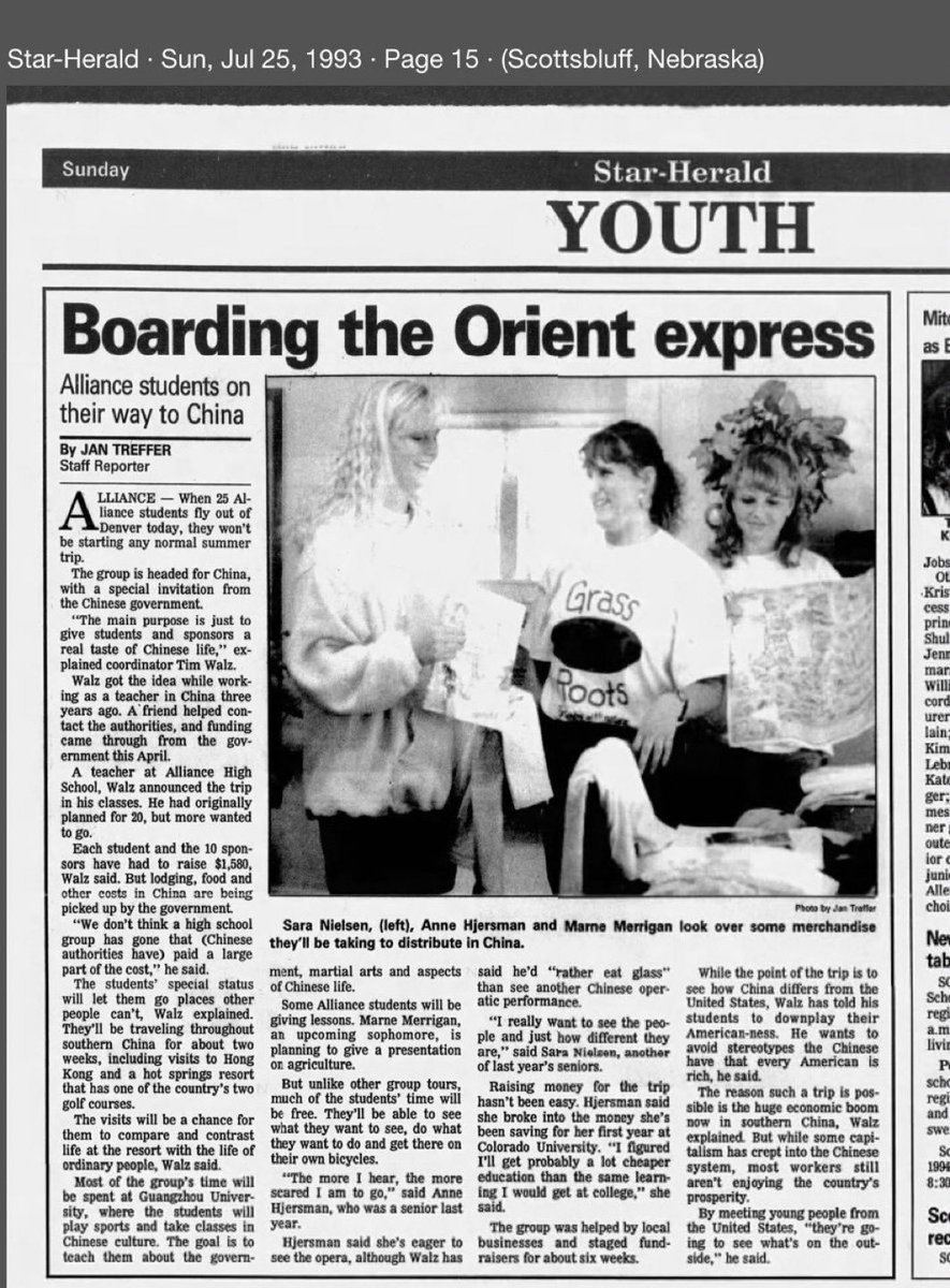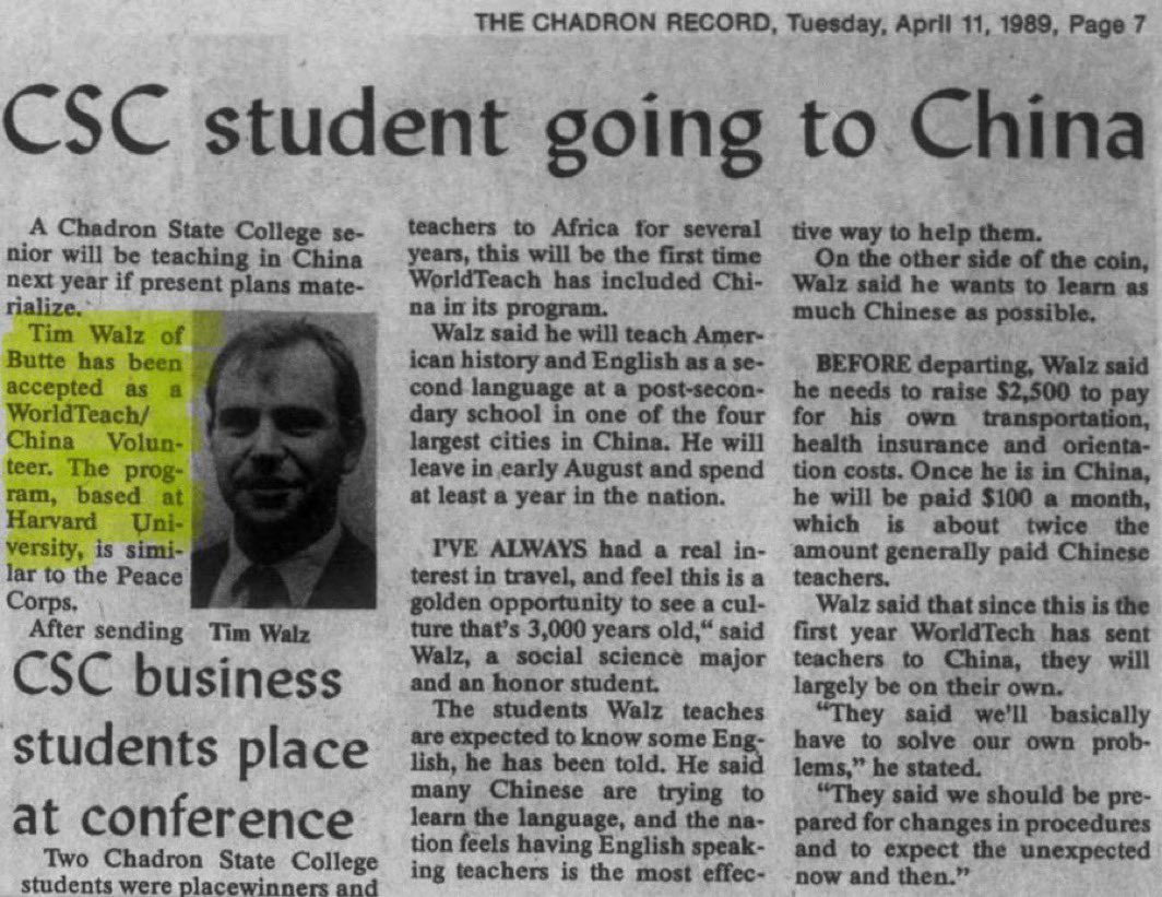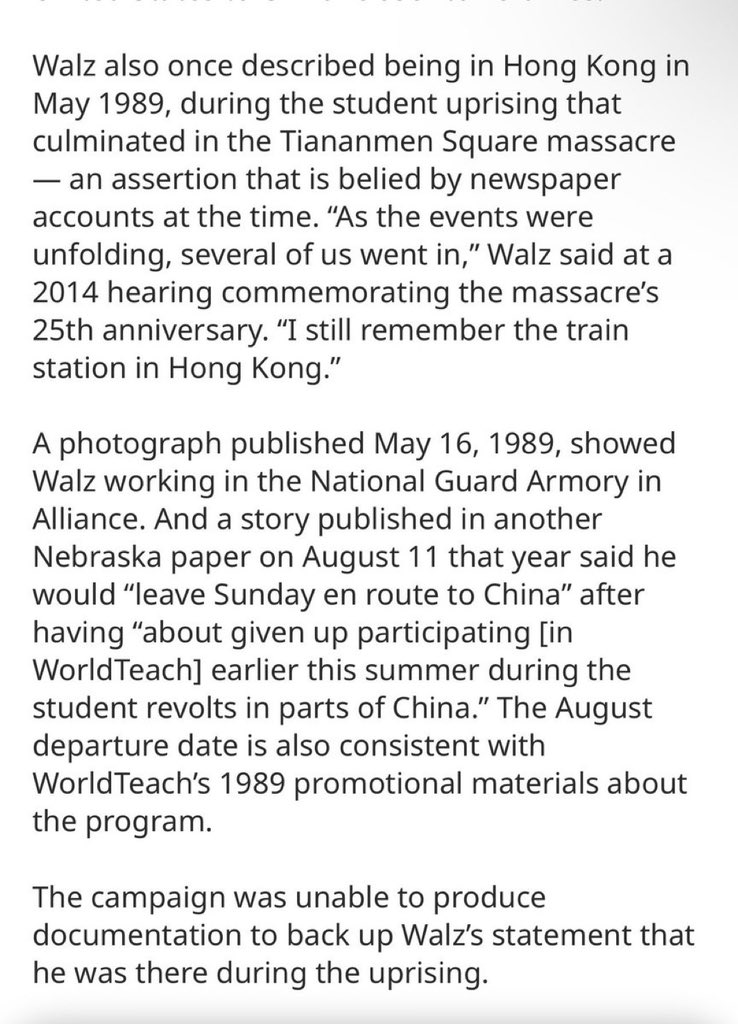 Also uncovered today was a news story showing Tim Walz in Nebraska during the Tiananmen Square Massacre. Walz is on record in Congress being present in Hong Kong during the massacre, which he wasn’t according to this conflicting report. 🧵6/15