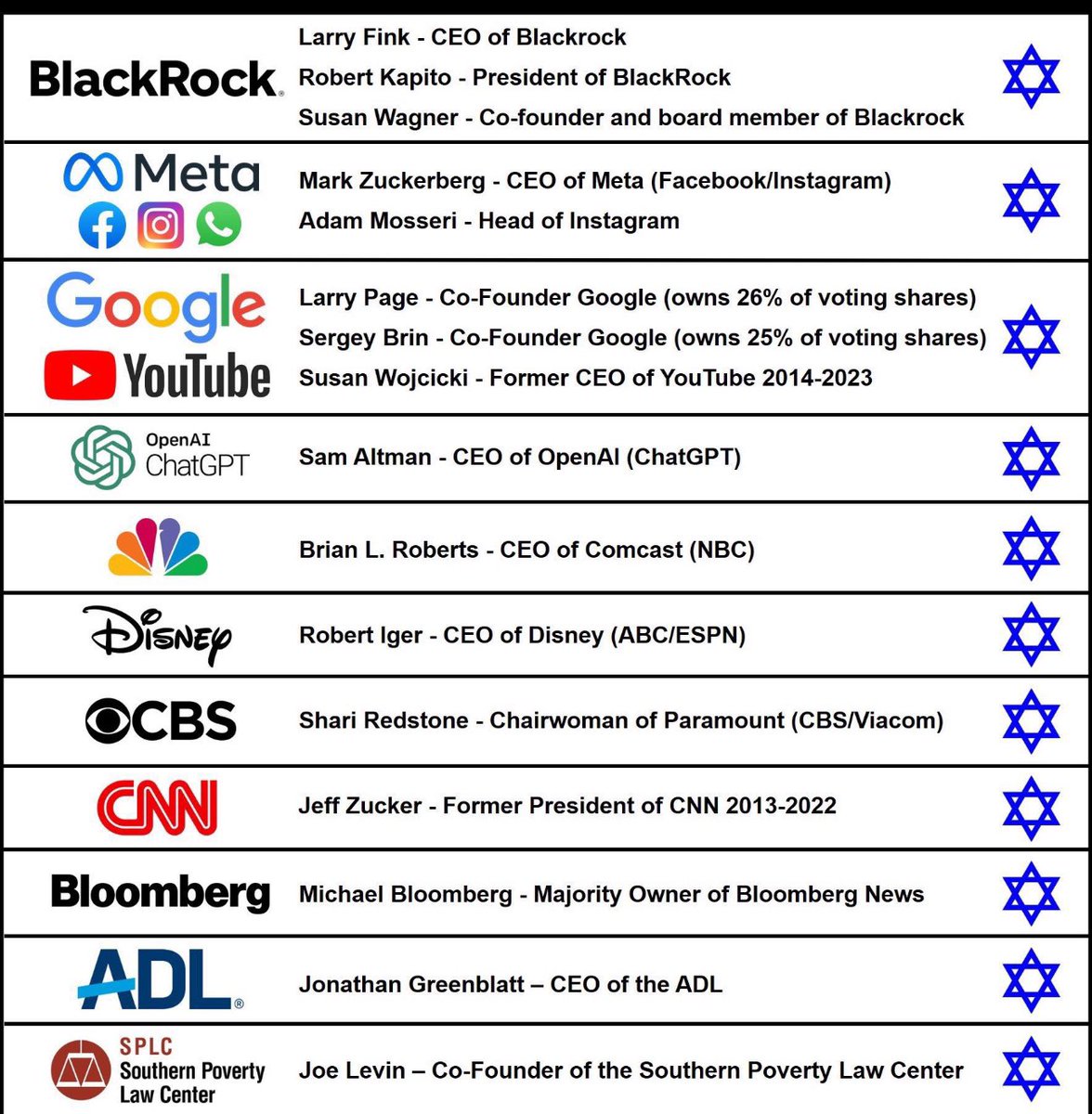 Would it be weird if a group making up only 0.2% of the world ran ALL of these companies? What if that group also owned 96% of the media? https://t.co/2bu5MrEd7G