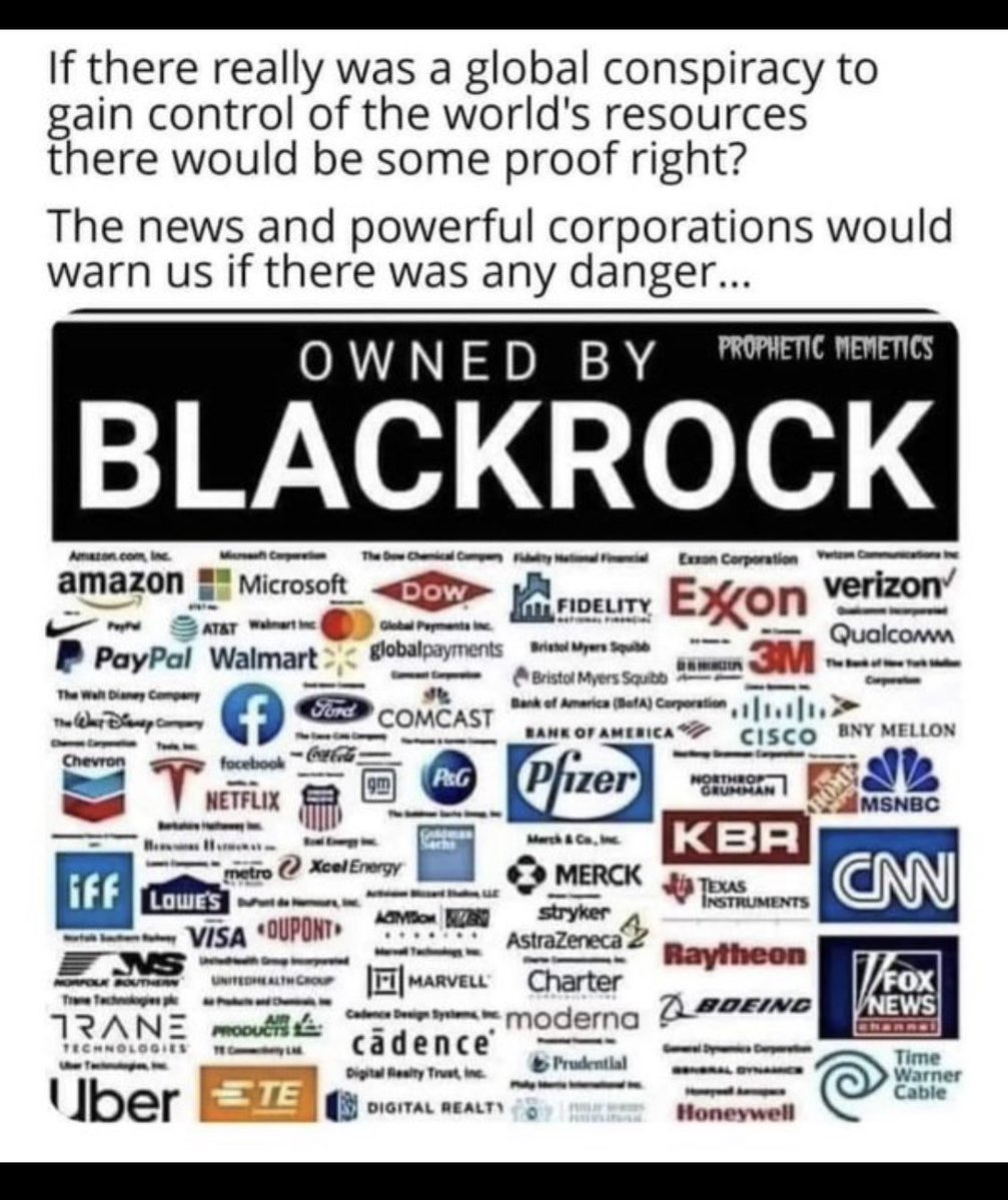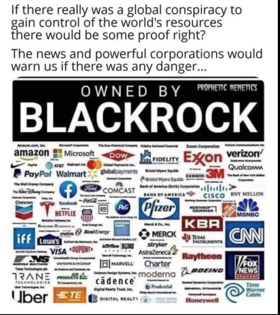 "Now we know that BlackRock are in the top 3 shareholders of every corporation." Can anyone stop them from owning the world? https://t.co/tI0chFdXUO