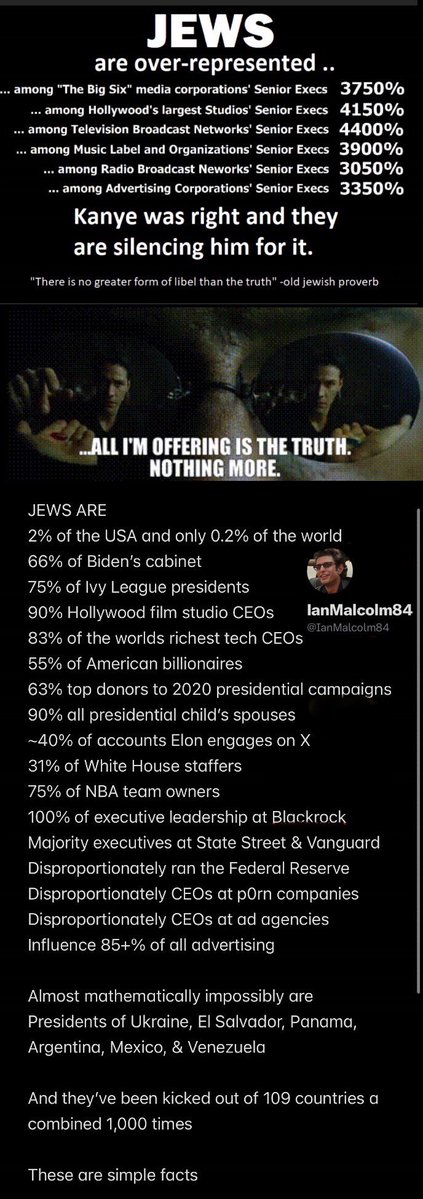 “WHAT IF?”🧵 PLEASE RESHARE! WHAT IF a tiny group of people had disproportionate control of culture, news,social media, politicians, banking, tech, finance, your nations’ policy, & married all presidential children? Would it concern if they had subverted & enslaved your people? https://t.co/N7RlhiXtYf