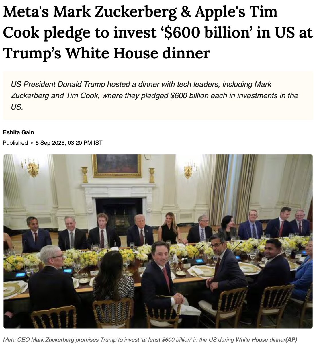 The $600+ billion in pledges isn't investment - it's insurance. Insurance against antitrust breakups. Against regulatory oversight. Gates buying influence, Zuckerberg buying protection, Cook buying market access. These billionaires just bought themselves a government protection racket.
