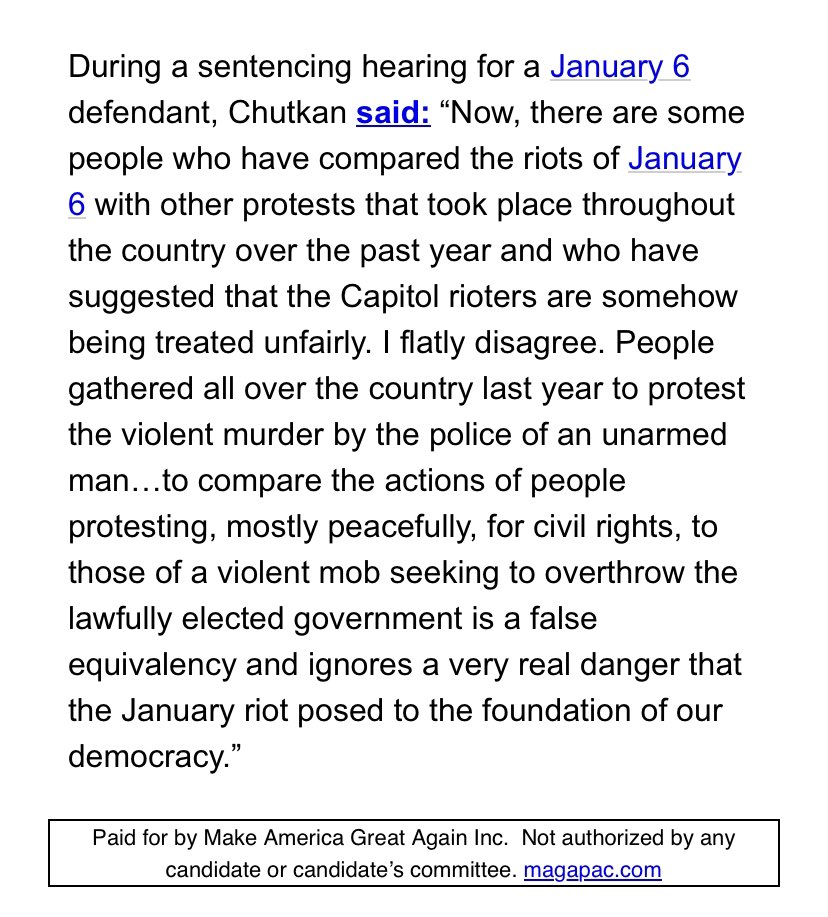 Trump campaign out this AM with a particularly brazen attack on Judge Chutkan that is likely to reverberate in his criminal case. Among other things, it claims she defended riots over summer of 2020 (she didn’t, she just said J6 was worse). But note the deceptive ellipsis.