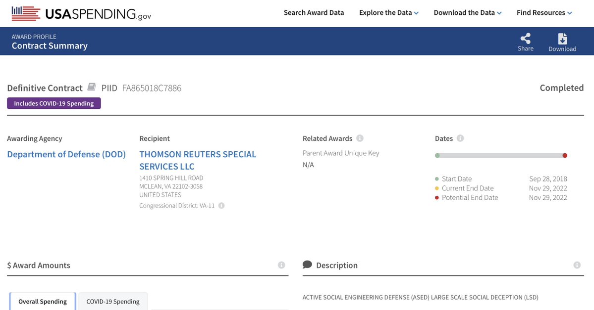 Reuters, the news agency that brings Americans so much of their news coverage about war, has a Palantir-like side business that receives $145 million in Pentagon contracts. At what point do we call Reuters a military contractor? https://t.co/Ro4s2k7yKL