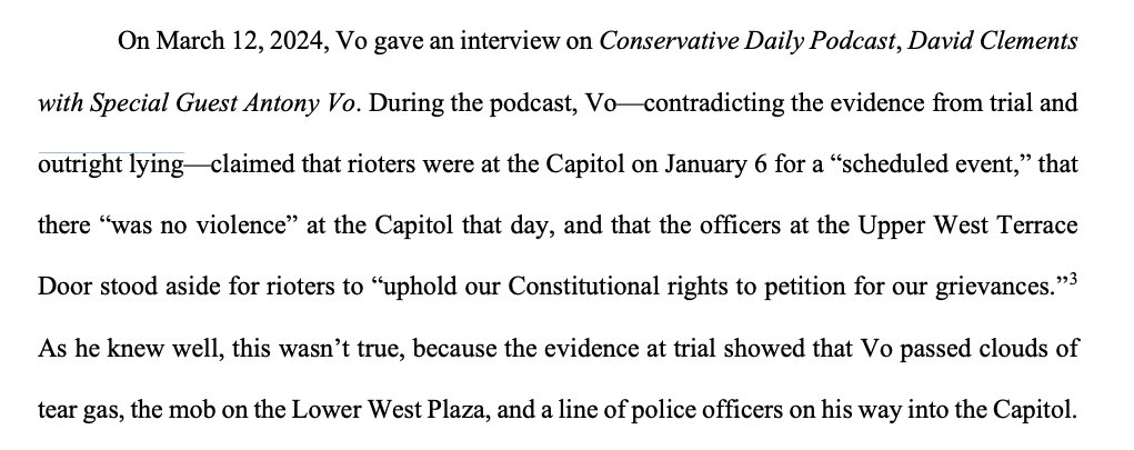 “yeah they stood down and retreated after we clearly outnumbered them.” For Anthony Vo (who entered through a door arguably chiller than the one Lavernz entered), DOJ sought 11 months and $500 in restitution. Spoiler: DOJ likely isn't getting 11 months. https://storage.courtlistener.com/recap/gov.uscourts.dcd.234223/gov.uscourts.dcd.234223.142.0.pdf